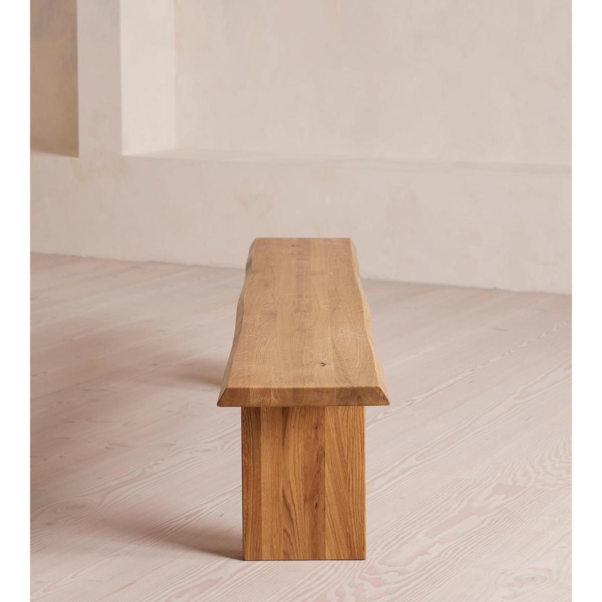 Available either in walnut wood with a natural finish or oak wood in a range of oiled finishes, this bench is distinguished by a characteristic live edge with natural knots and cracks. These raw details echo the rustic setting of Soho Farmhouse with no two pieces the same.