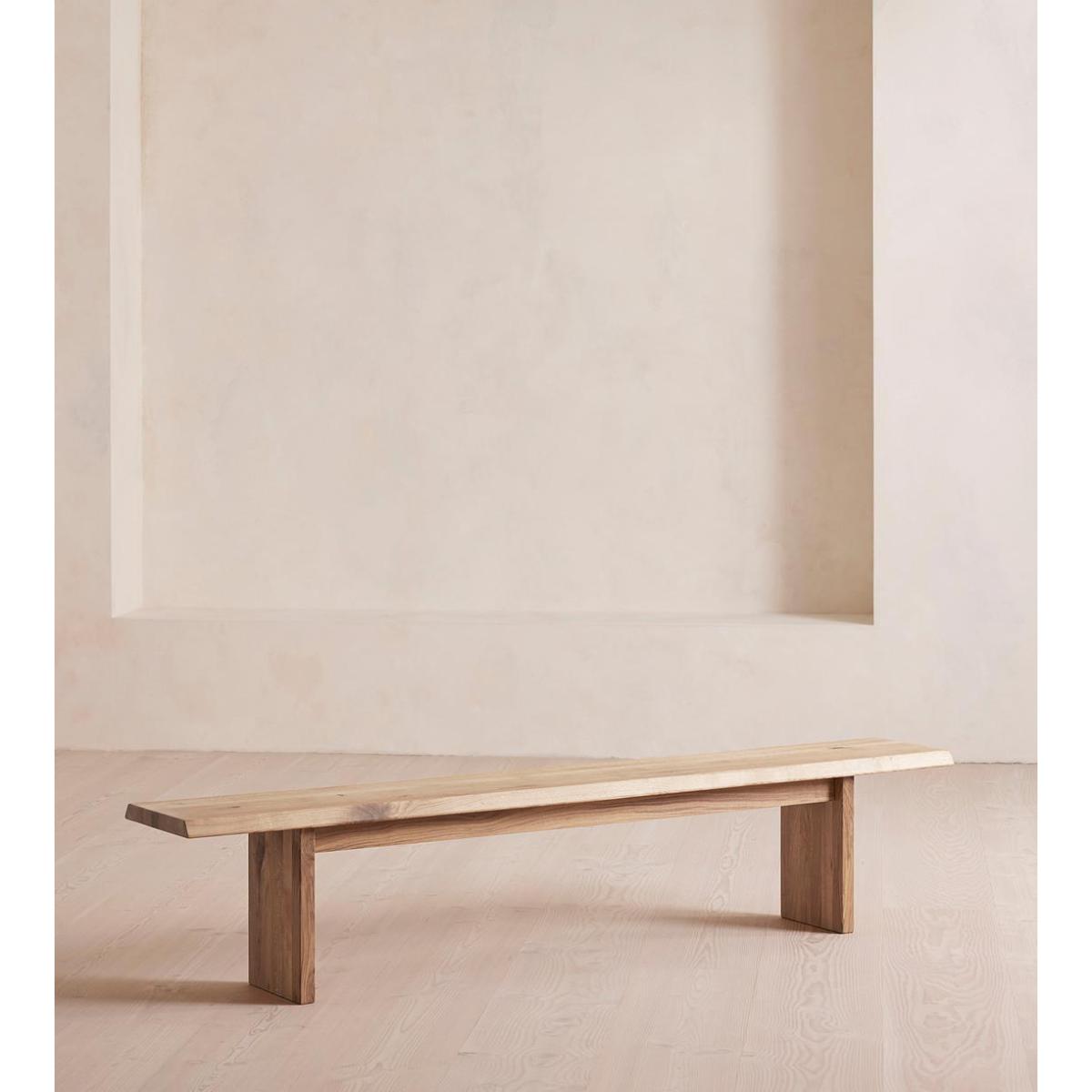 I’ve been using this slim white-oak bench in open-plan living and gallery-style spaces for its clean lines and generous length - at 280 cm it’s perfect for large dining tables or hallways where you need uninterrupted seating. Its pared-back silhouette suits Scandi-inspired, minimalist or Japandi interiors, but it also pairs well with textured rugs and mixed-material stools for a more layered look. Styling tip: anchor it with a low runner rug to define the area, then add a few sculptural vases or a long ceramic tray along the centre. For a softer touch, position a couple of loosely folded wool throws at one end and offset them with a pair of leather-strap cushions.