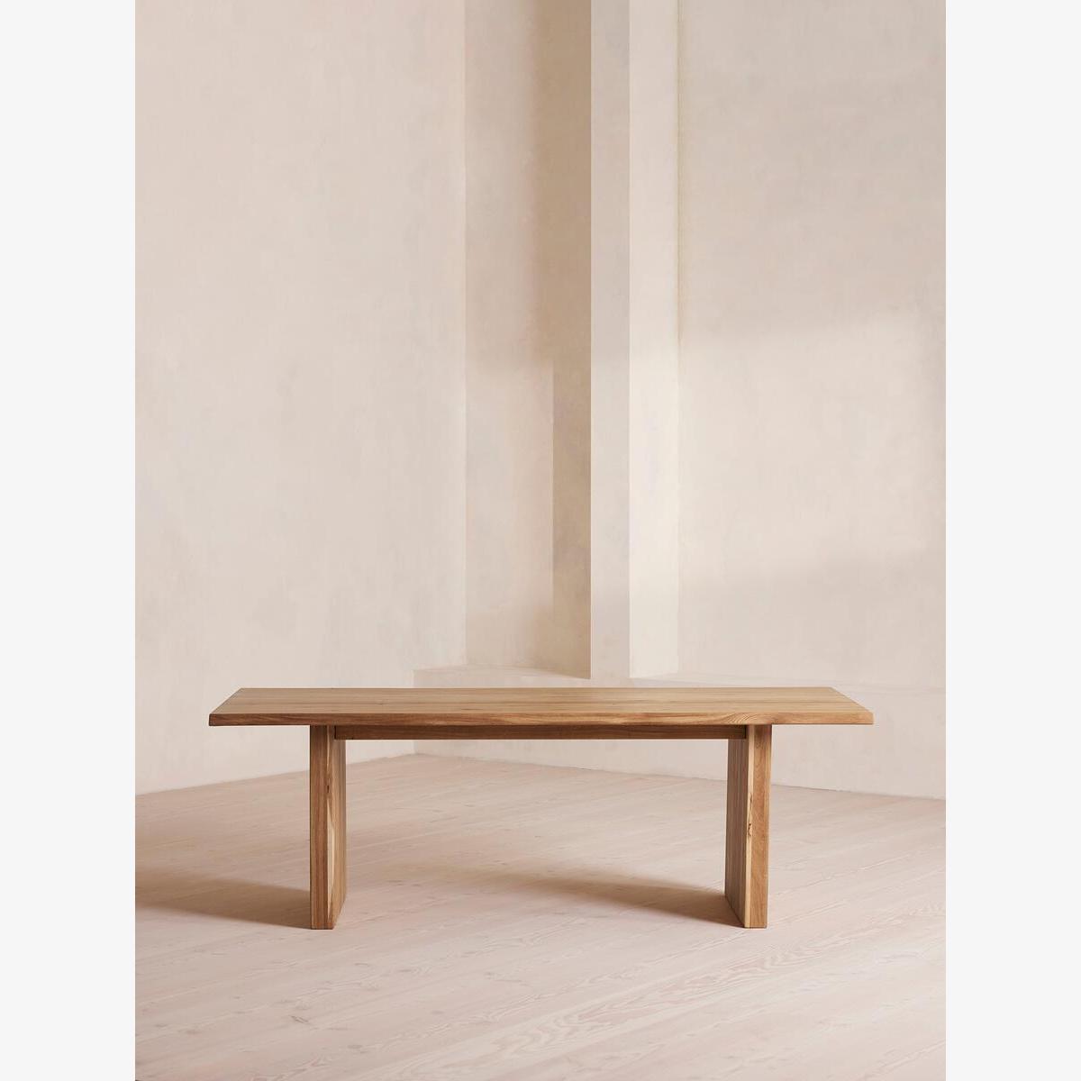 I’m a fan of the Matis table for its clean lines and generous proportions - the warm brown oak works equally well in both modern Scandi schemes and more traditional country settings. At 240 cm it’s ideal for family dinners or small dinner parties, yet its minimal frame keeps the room feeling open. To style it, start with a simple runner in a neutral tone and layer on a mix of ceramic plates and tinted glassware for a relaxed, gathered-around look. Pair with mixed-back dining chairs in light upholstery to soften the wood’s warmth and add a couple of low vases or candles as a subtle centrepiece.