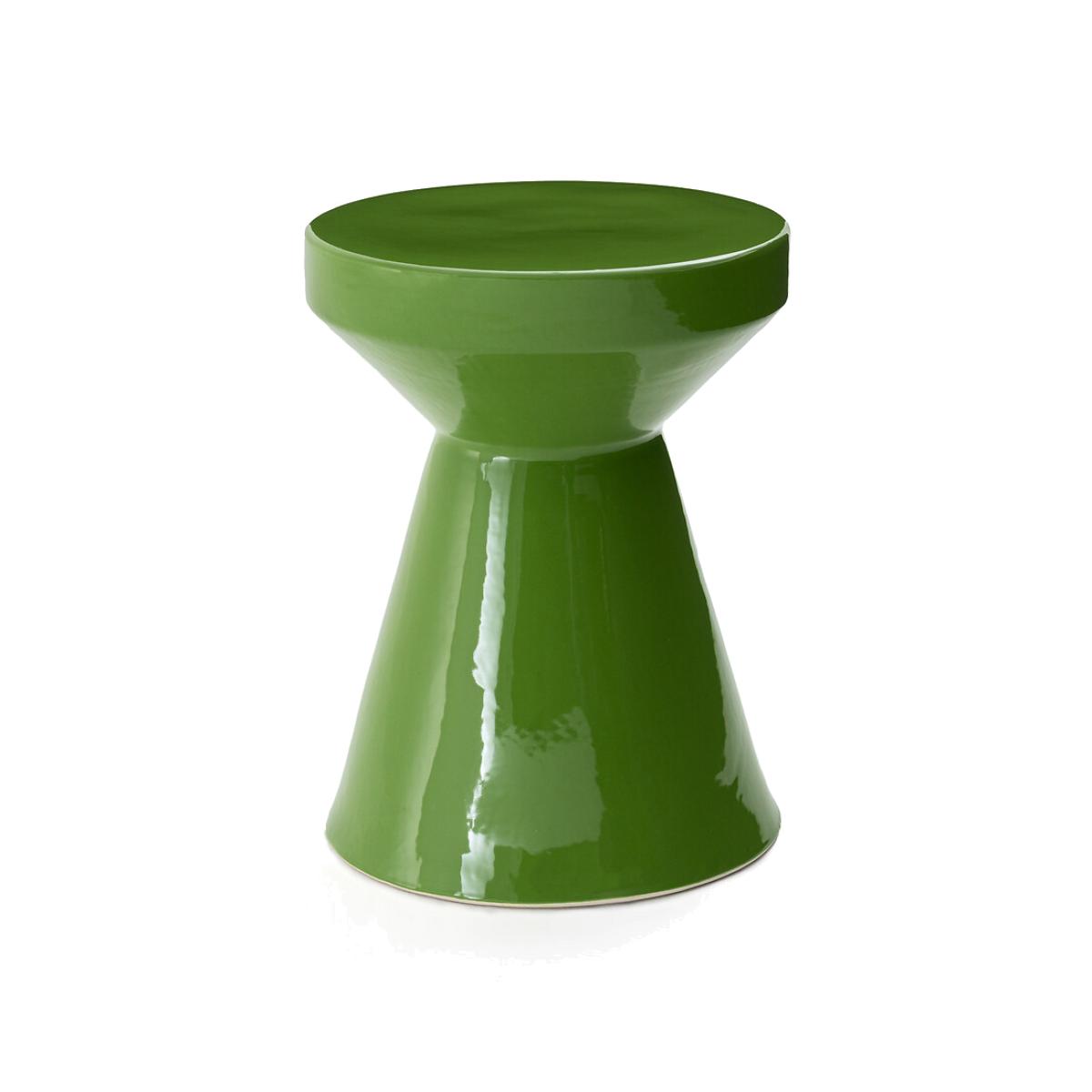 I love this little table for its bold colour and sculptural shape, making it an eye-catching piece that can serve as both a practical surface and a decorative statement. It works well in modern or eclectic interiors, especially those featuring colours or materials that can be complemented or contrasted with its vibrant green finish. Practical styling tips include using it as a bedside table in a colourful bedroom or as a side piece in a living room with neutral tones to add a pop of colour. Pair it with simple accessories like a sleek lamp, a small plant, or a stack of books to enhance its contemporary vibe without overpowering the space.
