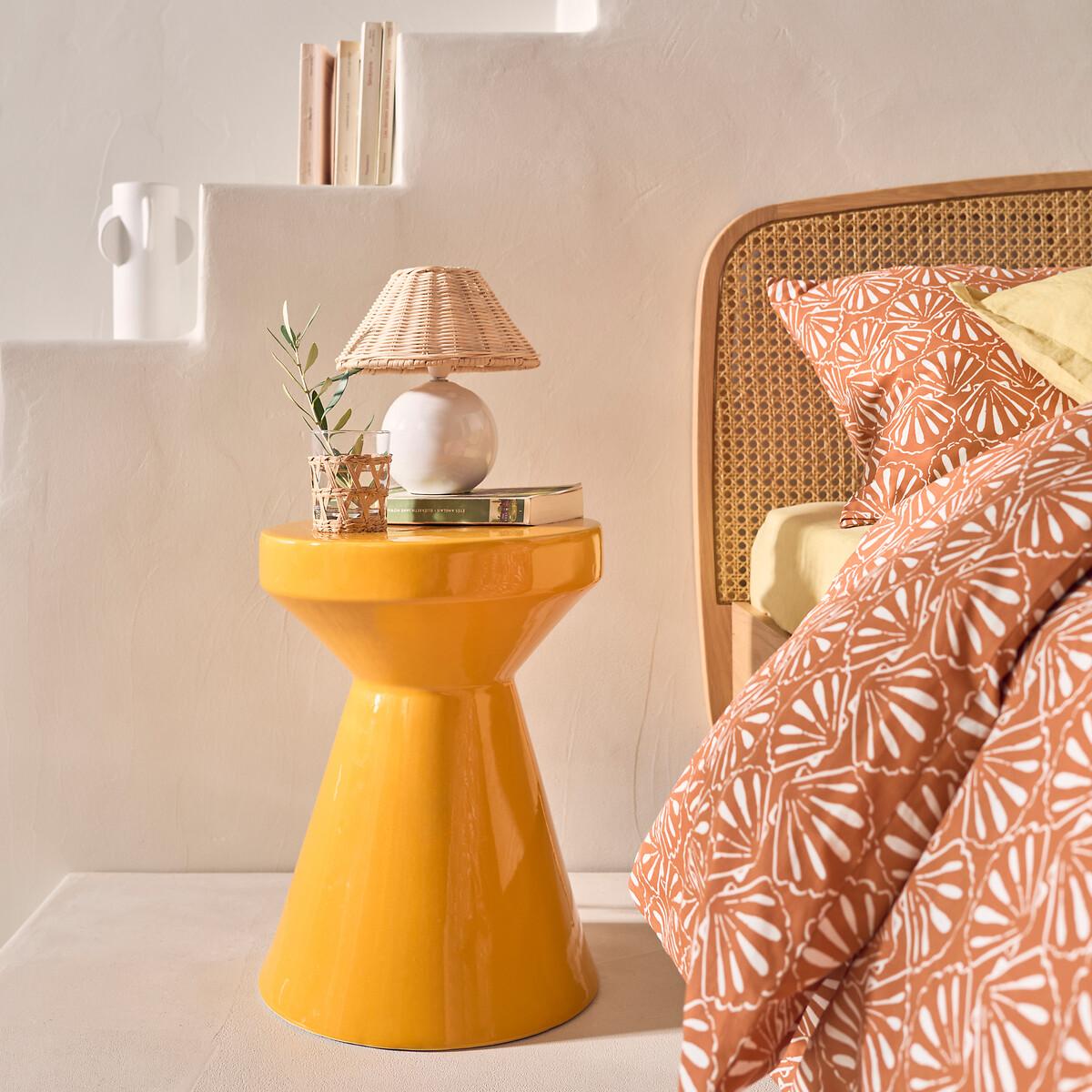 A work of art in its own right! This side table in coloured enamelled ceramic has a refined line and a vintage spirit. Designed by La Redoute Interiors. Product Details • Moulded, fired and glazed ceramic. • Felt pads on feet. Dimensions • Diameter: 34cm • Height: 45cmDelivery:. Sold pre-assembled. It will be delivered to your door. Note! Please check that all access points are large enough to accommodate your delivery (doors, stairs, lifts).Parcel dimensions and weight • 1 parcel • L42 x H55 x D42cm. 10.1kg