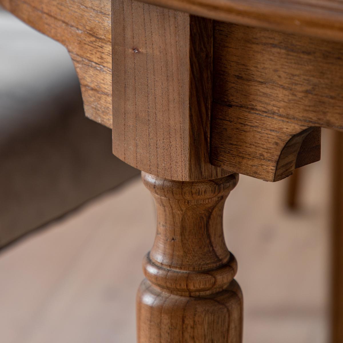 Extend your dining horizons with this Matola dining table, perfect for your smaller family. Designed to offer a new traditional look with a timeless elegant style and modern touch, this stunning table will add a sophisticated look to a room. The exquisite dark salvaged coffee coloured Mindy wood solids & veneers are stunningly rich, book matched marquetry detail and turned spindle legs add a elegant final touch. For added practicality the table extends with centre butterfly leaves, so it can seat up to 6 people.