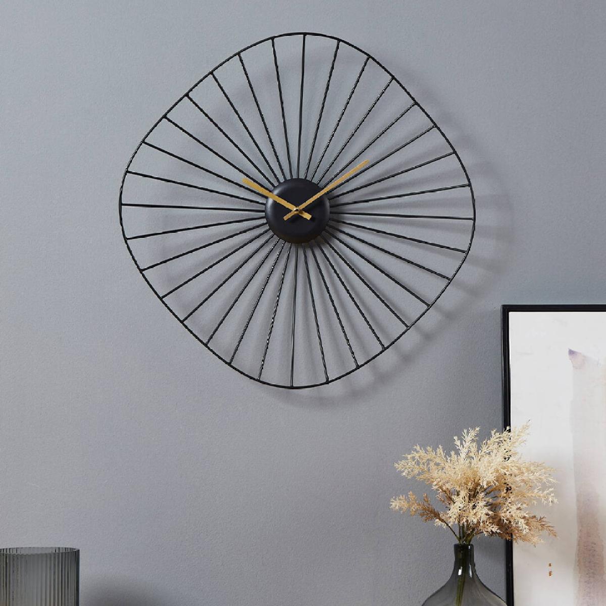 I love this little clock for its minimalist, modern design-it adds a touch of sleek sophistication without overpowering the space. Its black metal frame offers a versatile look that works well in contemporary, industrial, or even Scandinavian interiors. Practical styling tips include hanging it above a sideboard or within a gallery wall where its open, airy structure can be appreciated. To keep the look cohesive, pair it with other monochrome or metallic accessories, and consider placing it in a well-lit area to highlight its unique design. It’s perfect for adding a functional yet stylish statement to living rooms, kitchens, or home offices.