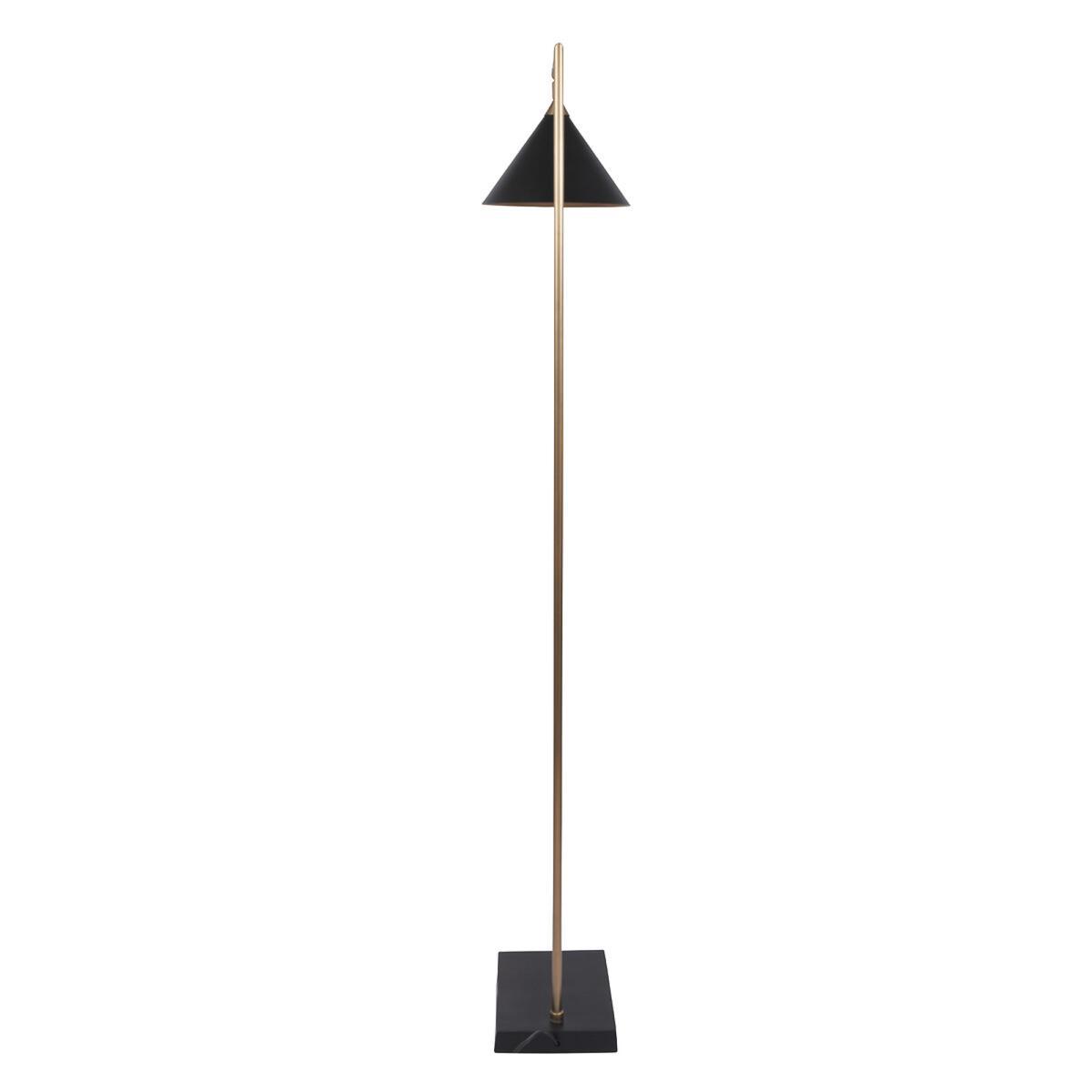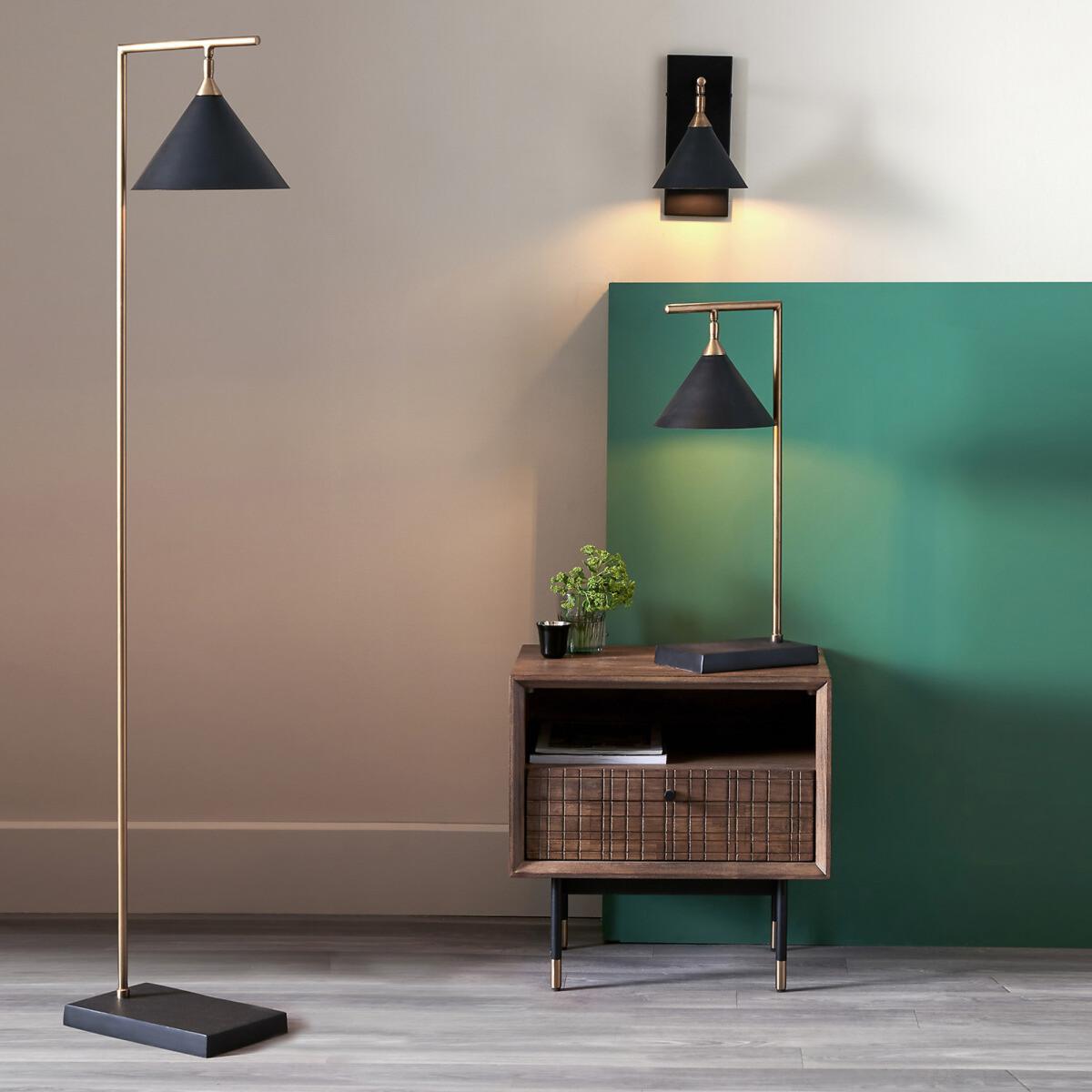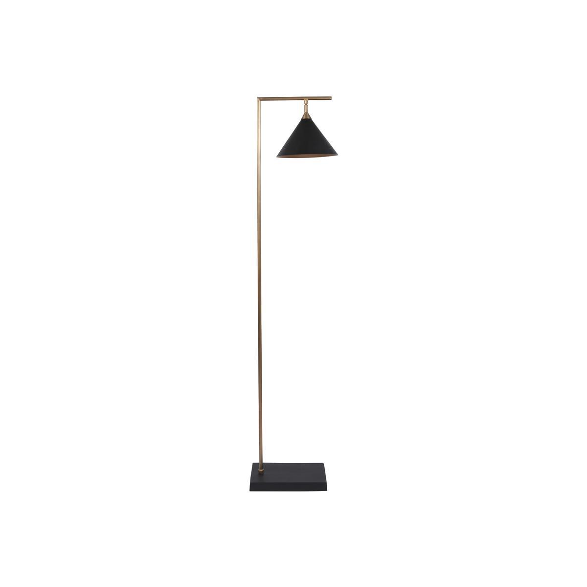 This sleek matt black and antique brass metal floor lamp is sure to make an impact in your interior with its sophisticated styling. The floor lamp has a moveable head which enables you to direct the light from its fabulous conical shade, wherever you desire. Product Dimensions: 26x40x161cm Bulb Type:E14 Black plastic (adjustable) Maximum Wattage:6W LEDBulb Included?:No. Number of Bulbs Required:1Cable/ Switch Info:Black plastic, 2x0.75mm², 2.5m from side of base, Black foot switch (80 cm from the base)This product will be dispatched by one of our trusted suppliers. You’ll be contacted by their selected courier about your delivery.