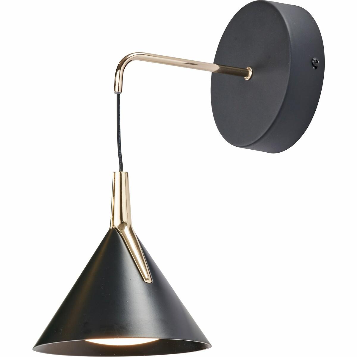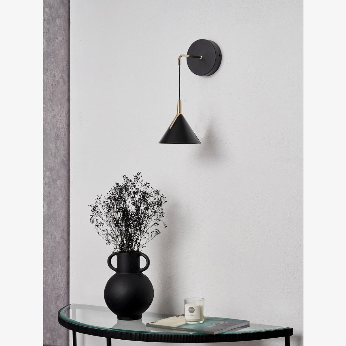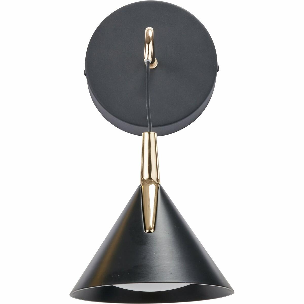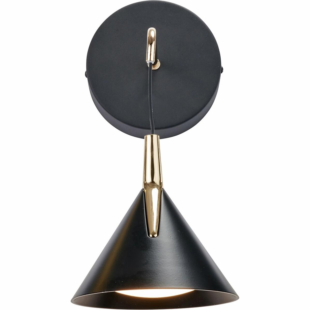Indulge in luxury with our LED wall light. The single drop wall light hangs with precision from a sleek black metal wall plate. The simple and stylish conical lampshade is crafted from black metal with gold metal finishes. Perfect for adding ambiance and style, this wall light is an atmospheric light source for your interior. Product Dimensions: 15 x 15 x 40cm. Composition- Metal This product will be dispatched by one of our trusted suppliers. You’ll be contacted by their selected courier about your delivery.