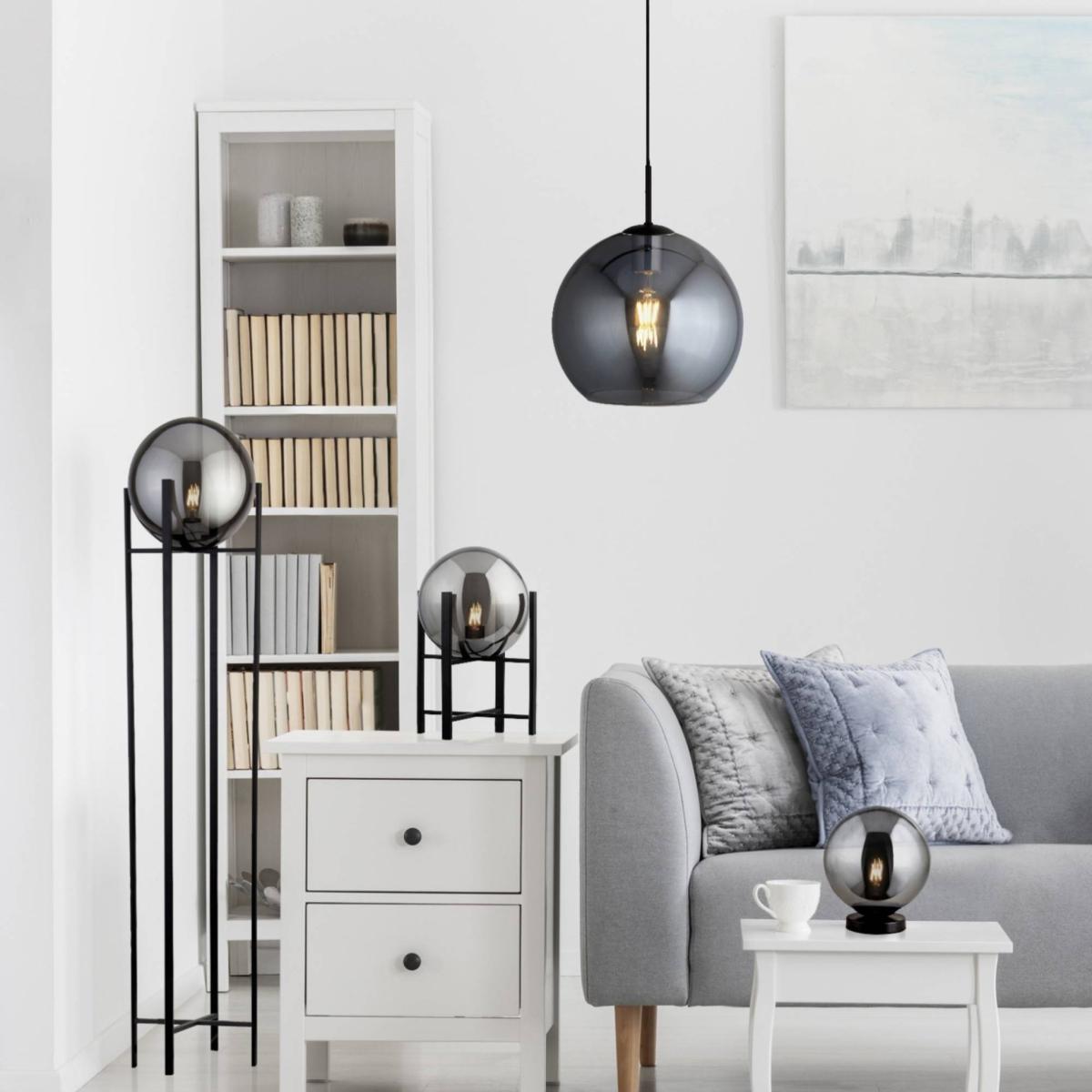 Create a subdued light with the trendy Matt Black Table Lamp. The soft curves of a smoked glass sphere is housed in a matt black frame, resulting in the perfect combination of tone and texture. Pair with a vintage LED bulb to create a warming and cosy atmosphere. We recommend our traditional Vintage effect E27 LED bulbs for a classic look, our E27 LED Warm Light for a soft warm glow, or our E27 LED Daylight for a crisp sharp look. Create a subdued light with the trendy Matt Black Table Lamp. The soft curves of a smoked glass sphere is housed in a matt black frame, resulting in the perfect combination of tone and texture. Pair with a vintage LED bulb to create a warming and cosy atmosphere. We recommend our traditional Vintage effect E27 LED bulbs for a classic look, our E27 LED Warm Light for a soft warm glow, or our E27 LED Daylight for a crisp sharp look.
