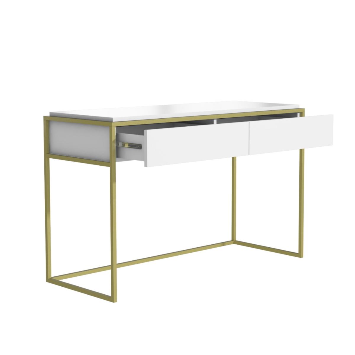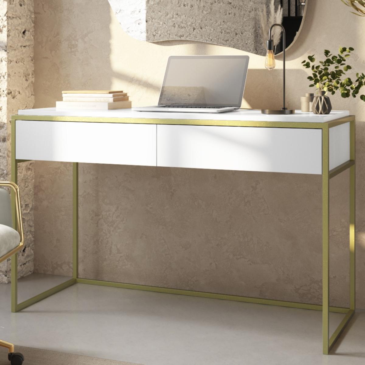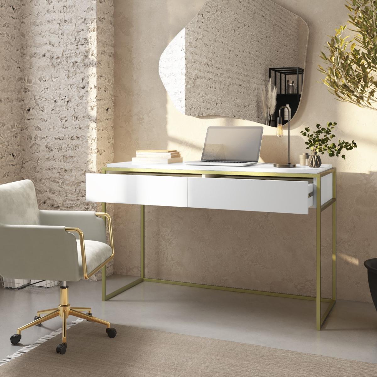 I love this desk for its clean, minimalist look that works well in contemporary and modern interiors. The white finish keeps the space feeling bright and open, while the drawers add practical storage, helping to keep clutter at bay. It’s a versatile piece that suits home offices or study areas, especially in rooms with a light colour palette or neutral tones. To style it effectively, pair it with sleek accessories like a modern desk lamp or a few artwork pieces to create a functional yet inviting workspace. Keep the surrounding decor simple to let the desk’s design stand out, and consider adding a cosy chair or a small plant to soften the overall look.