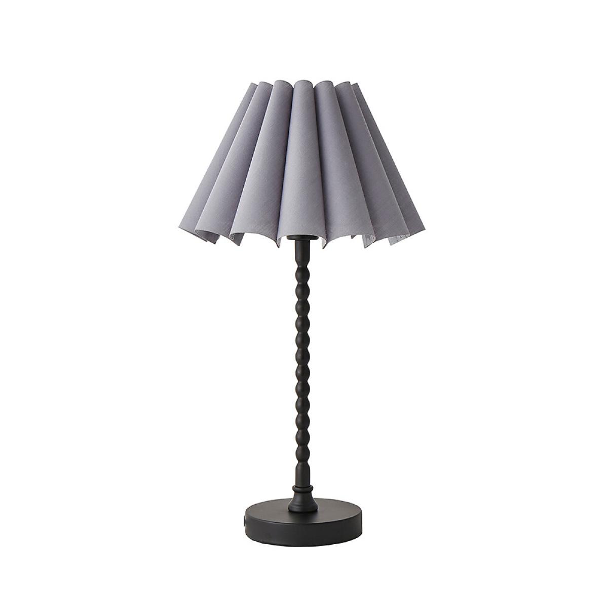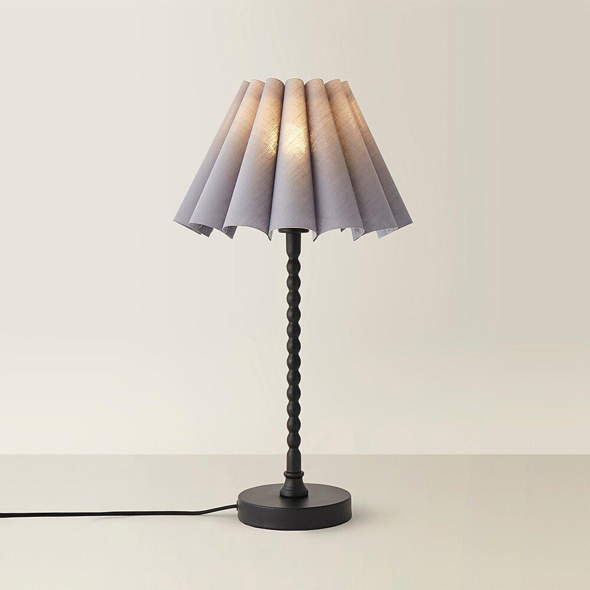 I love this table lamp for its sleek matte black finish combined with the softer touch of the scallop pleated shade - it adds a subtle touch of texture and sophistication. It works really well in modern or eclectic interiors, especially in spaces that combine contemporary pieces with vintage accents. Practical styling tips include placing it on a side table or console to create a cosy reading nook, or pairing it with neutral textiles to let the scalloped shade be a focal point. The black base grounds the look and makes it versatile enough to fit into different colour schemes, while the pleated shade offers a refined but approachable aesthetic.