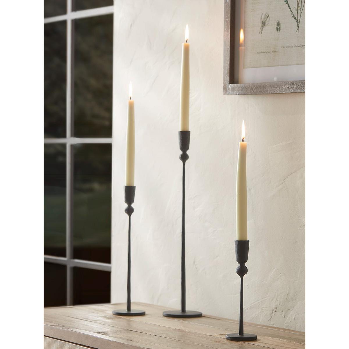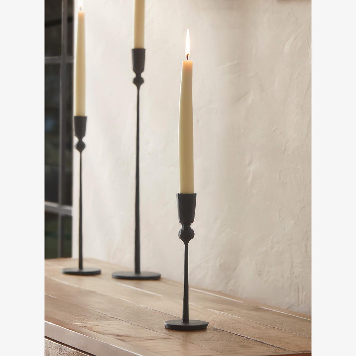 So simple and yet so enduringly stylish, our matte black dinner candle holders will make a timeless addition to your dining table, mantelpiece or indeed any position you fancy.  Tall and elegant in stature, the rustic matte black highlights the hand forged markings which gives each candlestick its character. Available in three sizes, they look sophisticated in matched pairs or arrange a few of different heights for a more fluid look. Also available in medium and large.
