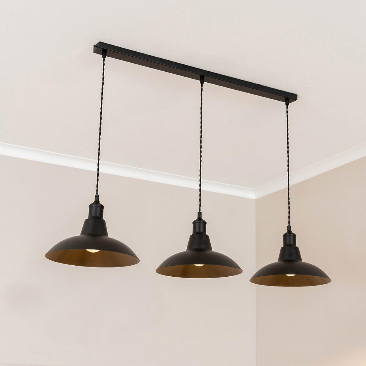 Brighten up your space with this matte black 3-drop bar E27 lamp holder. Sleek, sturdy, and effortlessly chic, it features 3 black metal dome shades that offer an edgy, contemporary touch. Easy to install, just add 3 of your favourite bulbs and let it shine. Whether you're creating a stylish loft vibe or a warm, rustic atmosphere, this light fixture will bring charm and character to any room. Caution: may lead to constant admiration from your guests!