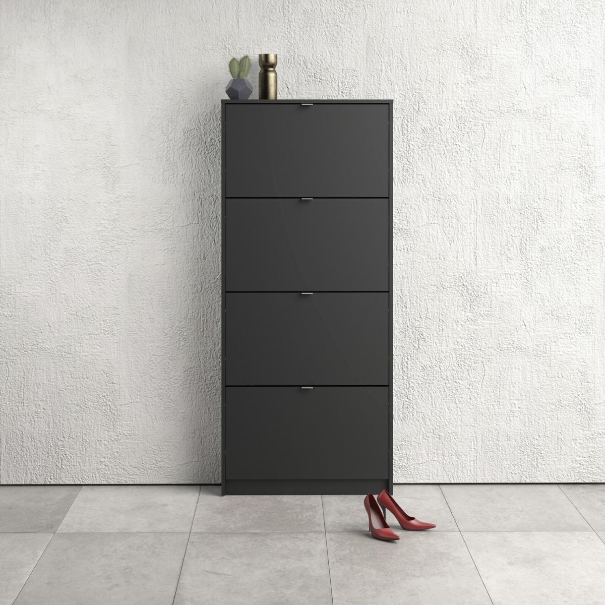 Dimensions H123.6 x W70.3 x D16.6 cm. The sleek design of this wall hung shoe cabinet allows for plenty of storage without dominating your hallway space. Features. This shoe cabinet features easy to open tilting doors making for an efficient storage solution for your home Simple minimal and effective design which fits perfectly with practically any modern interior. Made from laminated board which is resistant to scratches moisture and high temperature Perfect for keeping your favourite shoes neatly by the door. High quality fixings and hinges used throughout. Assembly required..