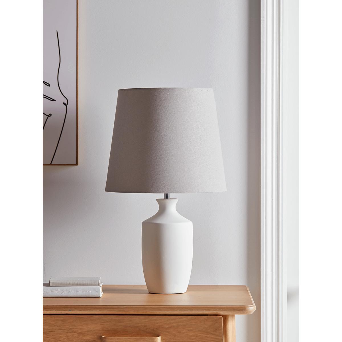 This Matte Grey Table Lamp, with its smoothly finished ceramic base and soft grey polycotton shade, is the perfect addition to any room with a pared back, Scandinavian look. Place it on top of our. Oslo Oak Storage Console Table. To really see it brighten up a room. Discover how to create the perfect lighting scheme for your home using our. Lighting Buying Guide.
