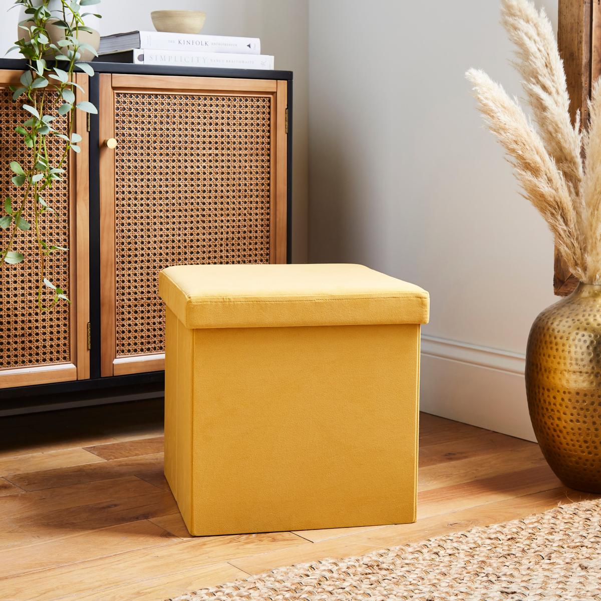 I love this yellow ottoman for its bold colour and soft velvet finish, which instantly adds warmth and an inviting tone to a variety of interiors. It works particularly well in contemporary and mid-century styled spaces, offering both style and functionality. Because of its compact size, it’s versatile-perfect as a footrest, extra seating, or even a side table when topped with a tray. For styling tips, try pairing it with neutral furnishings to let the vibrant hue stand out, or incorporate other yellow accents for a cohesive look. It’s also practical to keep near a sofa or armchair, where it can easily serve its purpose while injecting a cheerful touch to your room.
