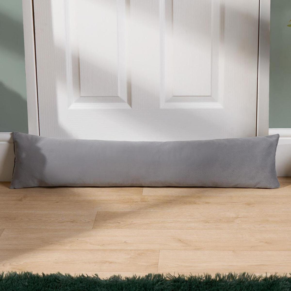 Matte Velvet Door Draught Excluder Draft Insulator - Light Grey