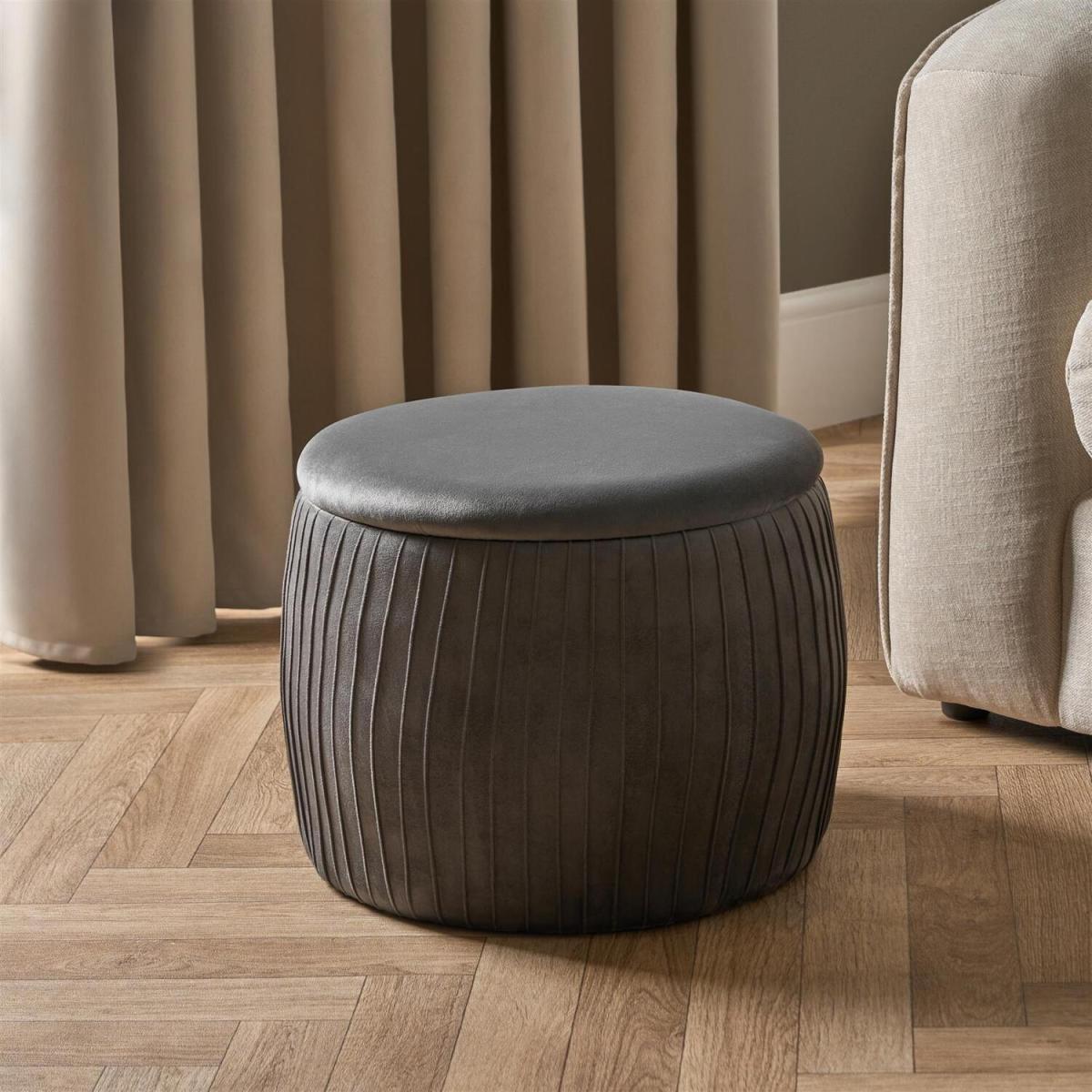 This is a really versatile piece that works well in both modern and contemporary interiors. The matte velvet finish adds a touch of understated luxury without feeling overly formal, making it ideal for living rooms, bedrooms, or even dressing areas. I love how it combines style with practicality - the pleated design gives it texture, while the storage function helps keep clutter at bay. When styling, consider pairing it with neutral or muted tones to really let the charcoal pop, or go for a contrasting colour or pattern to create visual interest. It also works beautifully alongside soft furnishings like textured rugs or throw cushions, making it a functional yet stylish addition to any scheme.