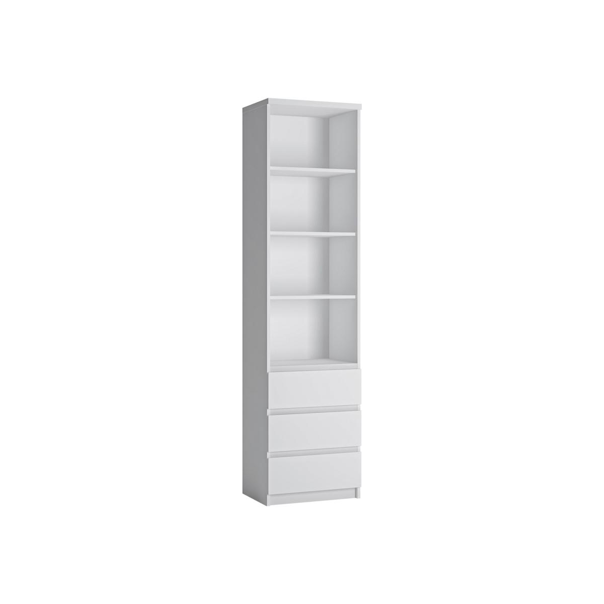 Matte White Display Unit with 4 Shelves and 3 Drawers - Fribo