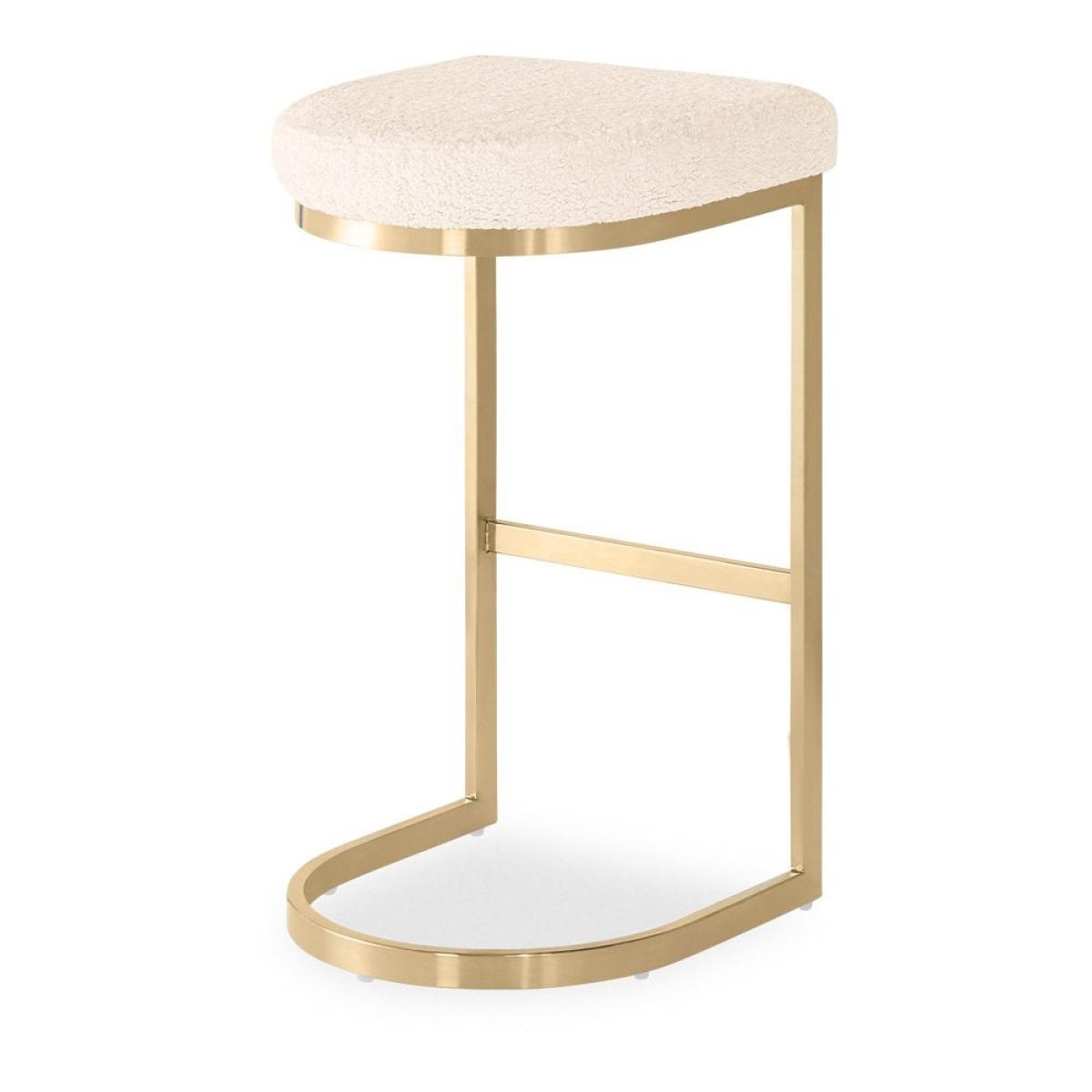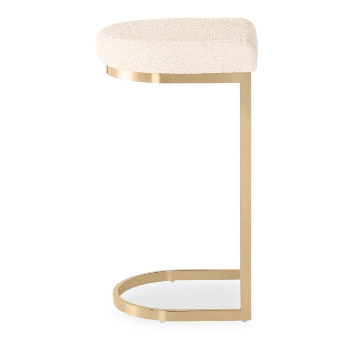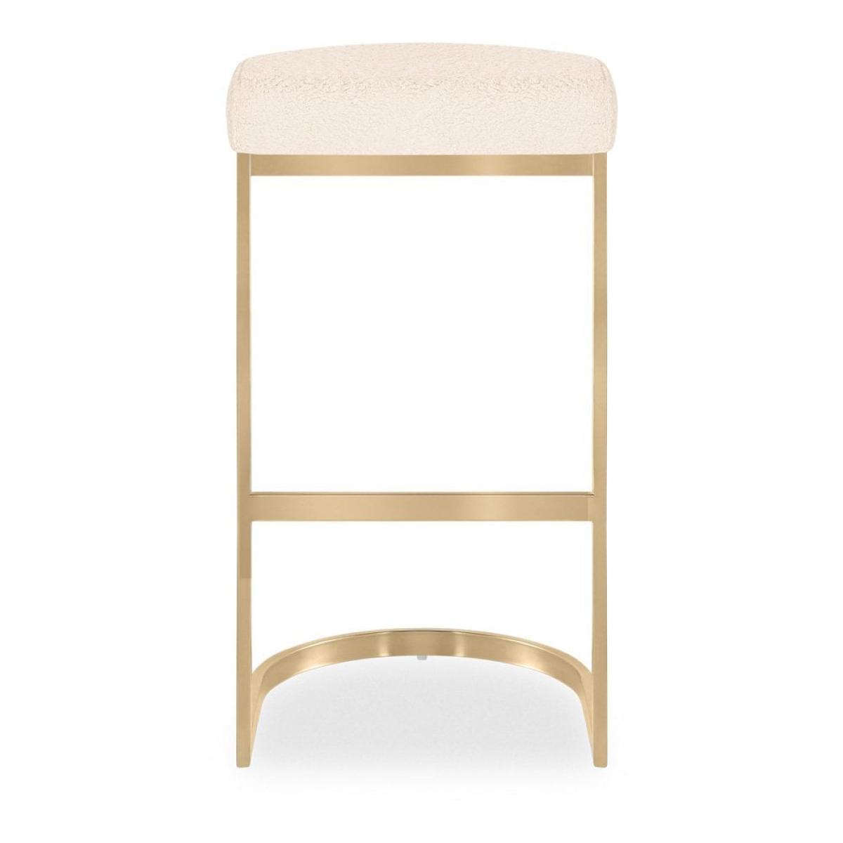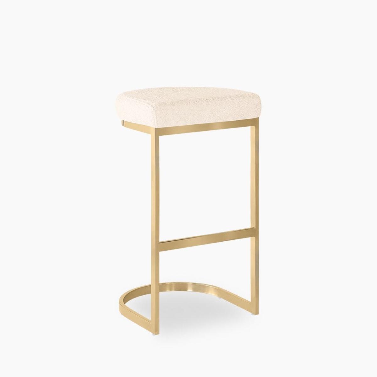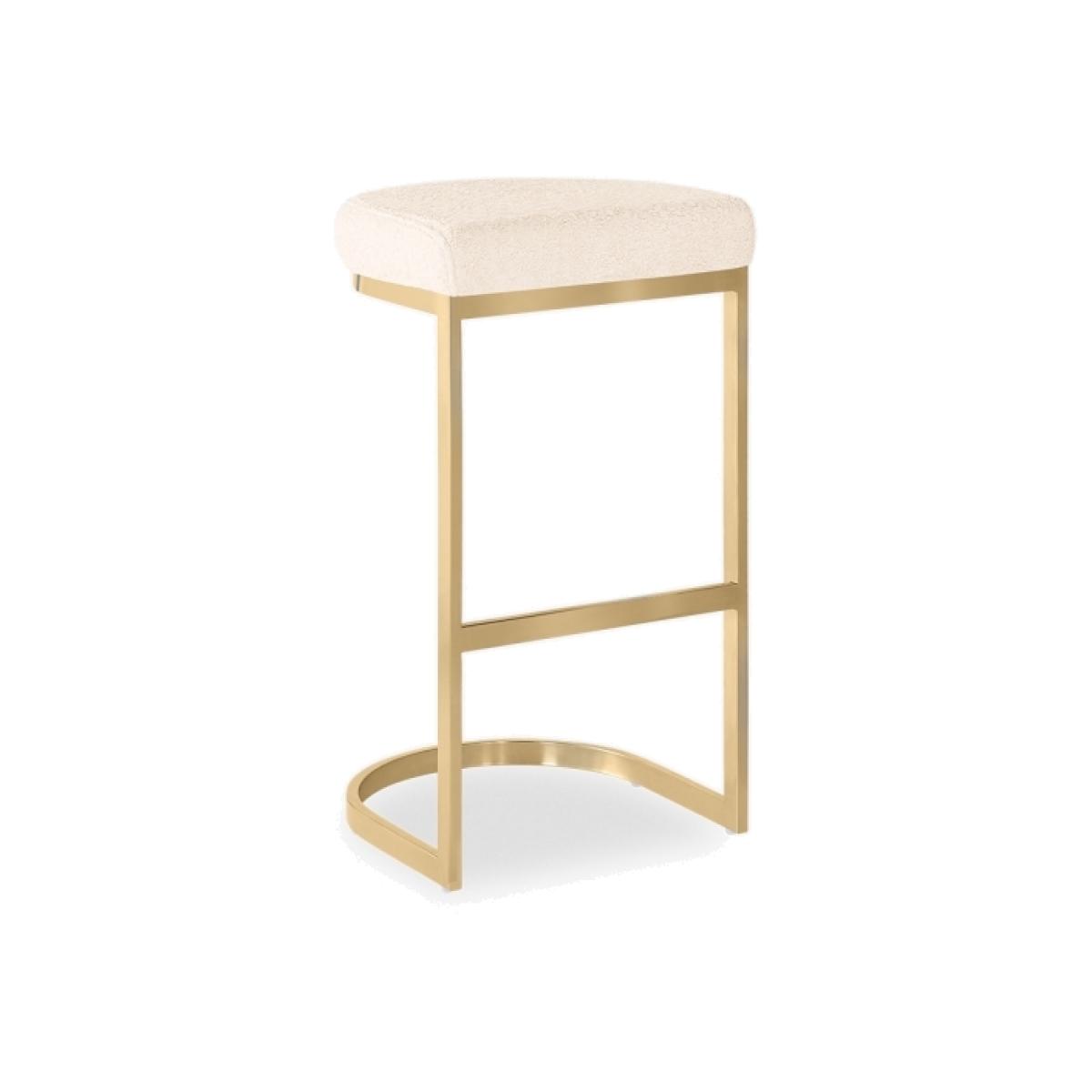 The Matteo metal bar stool in ivory white brings Art Deco-inspired furniture into your home. The thick brushed metal base of the stool is in a curved design with built-in footrest, perfect for perching at the breakfast island or bar. The Matteo range features a comfortable padded seat with our premium boucle upholstery. The result is a contemporary style that adds luxe design without compromising on comfort. View The Matteo Range