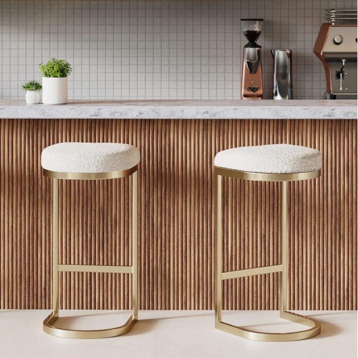 I’m a big fan of the Matteo stool for its clean-lined silhouette and soft ivory boucle seat balanced by a brushed brass frame. It sits neatly under a kitchen island or home bar and works equally well in Scandi-inspired, contemporary-classic or even minimalist-industrial schemes. To style it, pair with a warm wood or marble countertop and introduce contrast through a navy island base or dark green cabinetry. Keep boucle looking fresh by gently brushing the fibres now and then, and consider a slim seat pad in a complementary hue if you need extra comfort or easy colour updates.