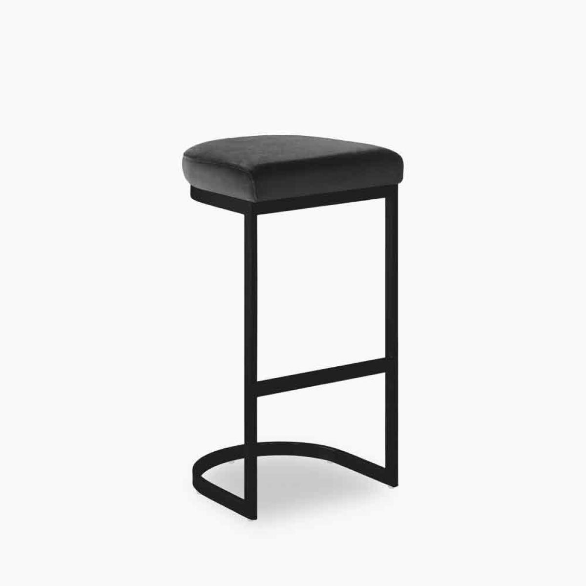 Matteo Bar Stool, Midnight Grey Recycled Velvet Leg Colour: Black