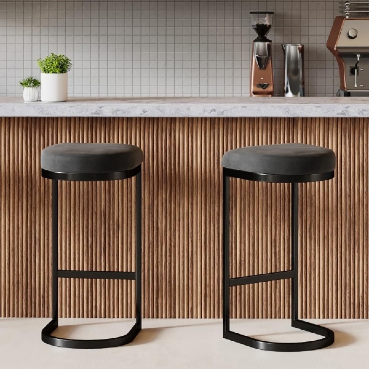 I really like this stool for its sleek, contemporary look. The midnight grey recycled velvet seat adds a touch of luxe while being sustainable, which is a great choice for eco-conscious interiors. The black legs offer a striking contrast, making it versatile enough to fit in both minimalist and industrial-style kitchens or bars. For styling, I’d suggest pairing it with similarly modern accessories or placing in a kitchen with matte finishes and metal accents. It works well in open plan living areas, breakfast bars, or as a statement piece in a stylish home pub. Practical tip: since the velvet is recycled, consider protecting the seat from spills to keep it looking fresh.