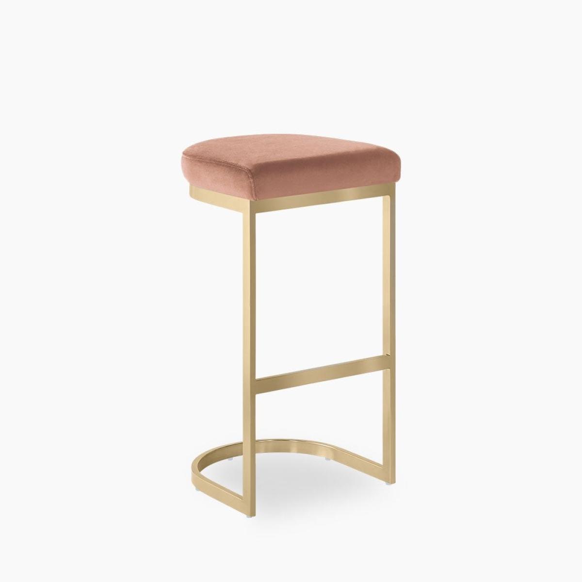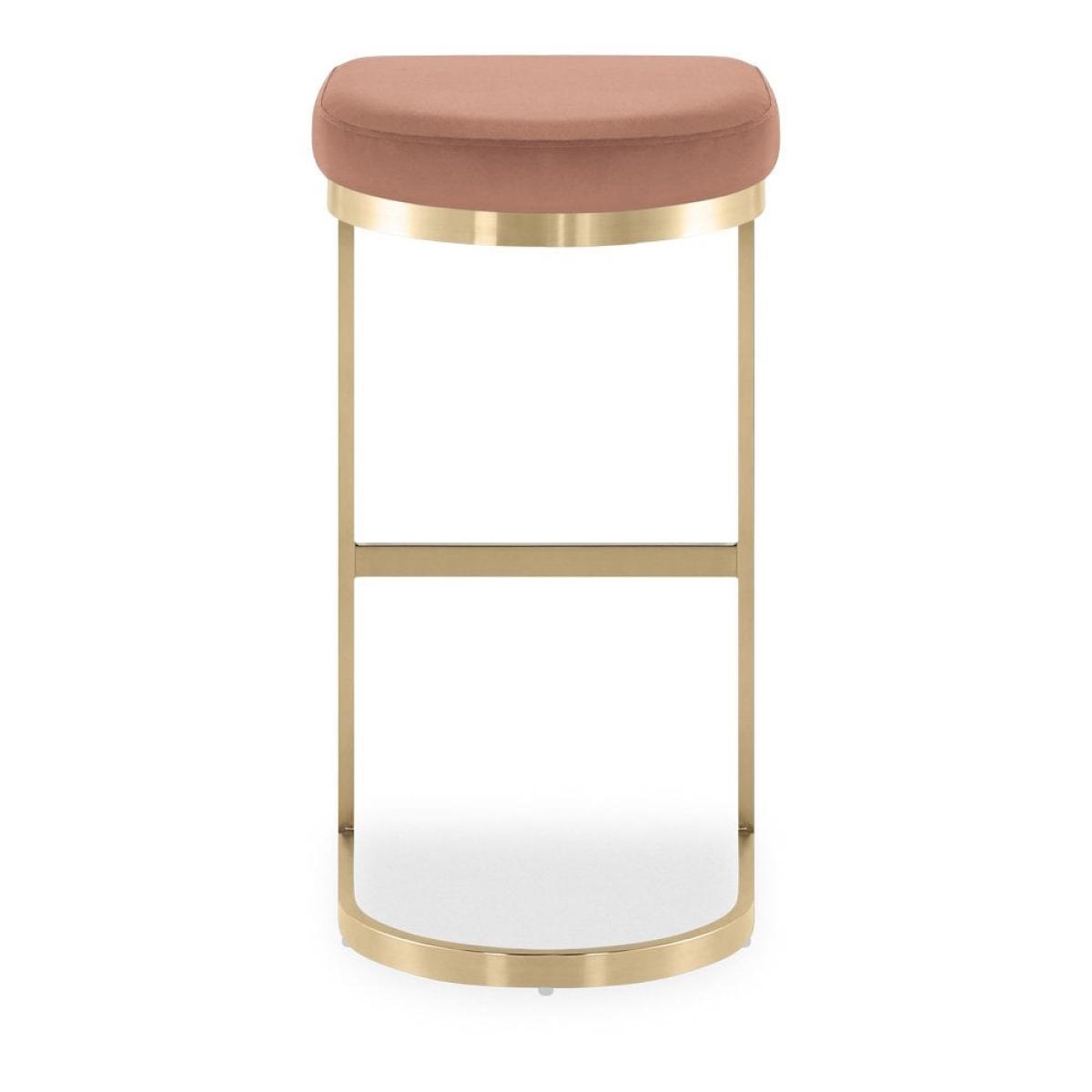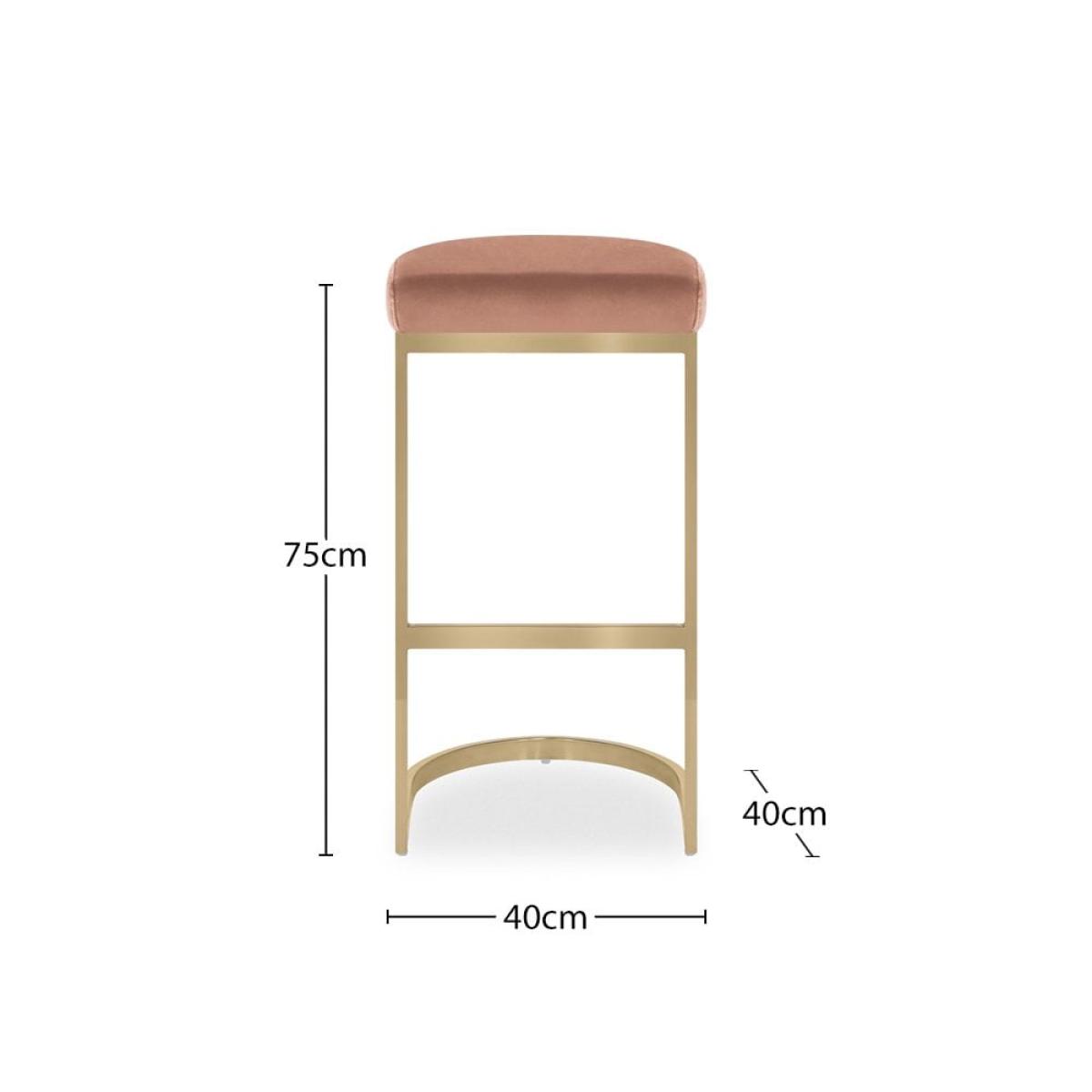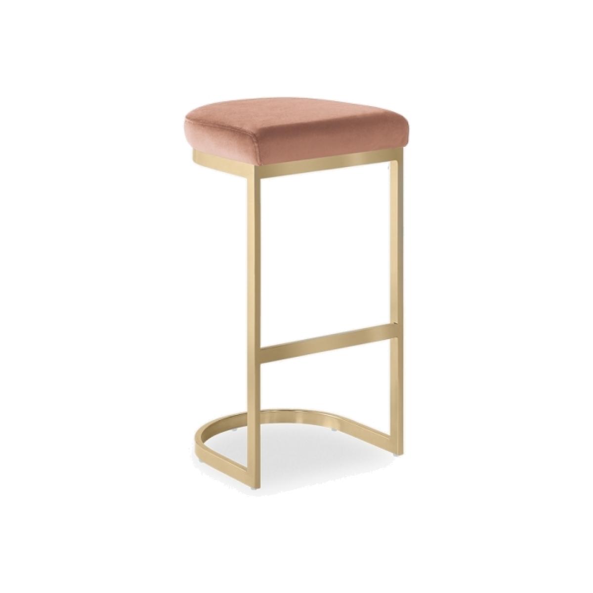 The Matteo metal bar stool in pink brings Art Deco-inspired furniture into your home. The thick brushed metal base of the stool is in a curved design with built-in footrest, perfect for perching at the breakfast island or bar. The Matteo range features a comfortable padded seat, along with our premium sustainable velvet upholstery, created with sustainability in mind. The result is a contemporary style that adds luxe design without compromising on comfort. For a rich depth of colour and unique softness, our velvet used in this product is not only of the highest quality but it is made from 100% recycled PET yarns so it is kinder to the environment too. View The Matteo Range