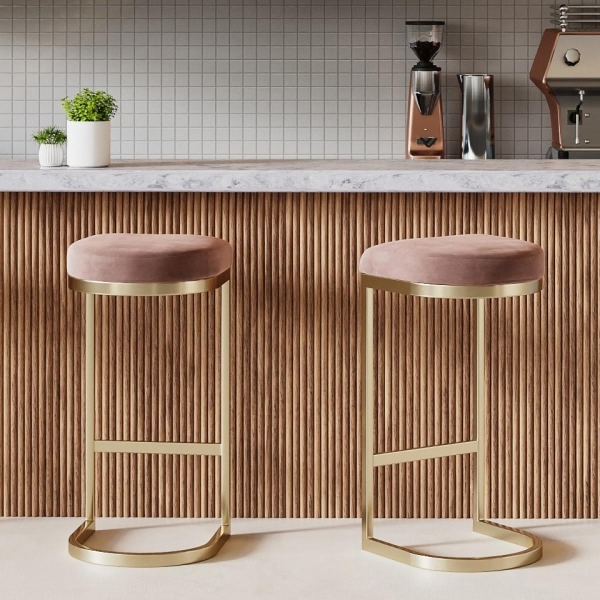 I love the pink velvet bar stool for its playful yet sophisticated vibe, making it an excellent statement piece for contemporary kitchens or home bars. Its colour adds warmth and personality, while the recycled velvet offers an eco-friendly touch without compromising on luxury. This stool works well in both modern and eclectic interiors, especially when paired with brass or gold accents to complement the frame. For styling, consider placing it against a neutral or pastel colour palette to let the pink stand out, and keep the surrounding accessories minimal to highlight its design. Practical tips include opting for it in spaces where comfort is key, as the velvet creates a soft, inviting seat perfect for casual seating or serving as an additional seating option at breakfast bars.