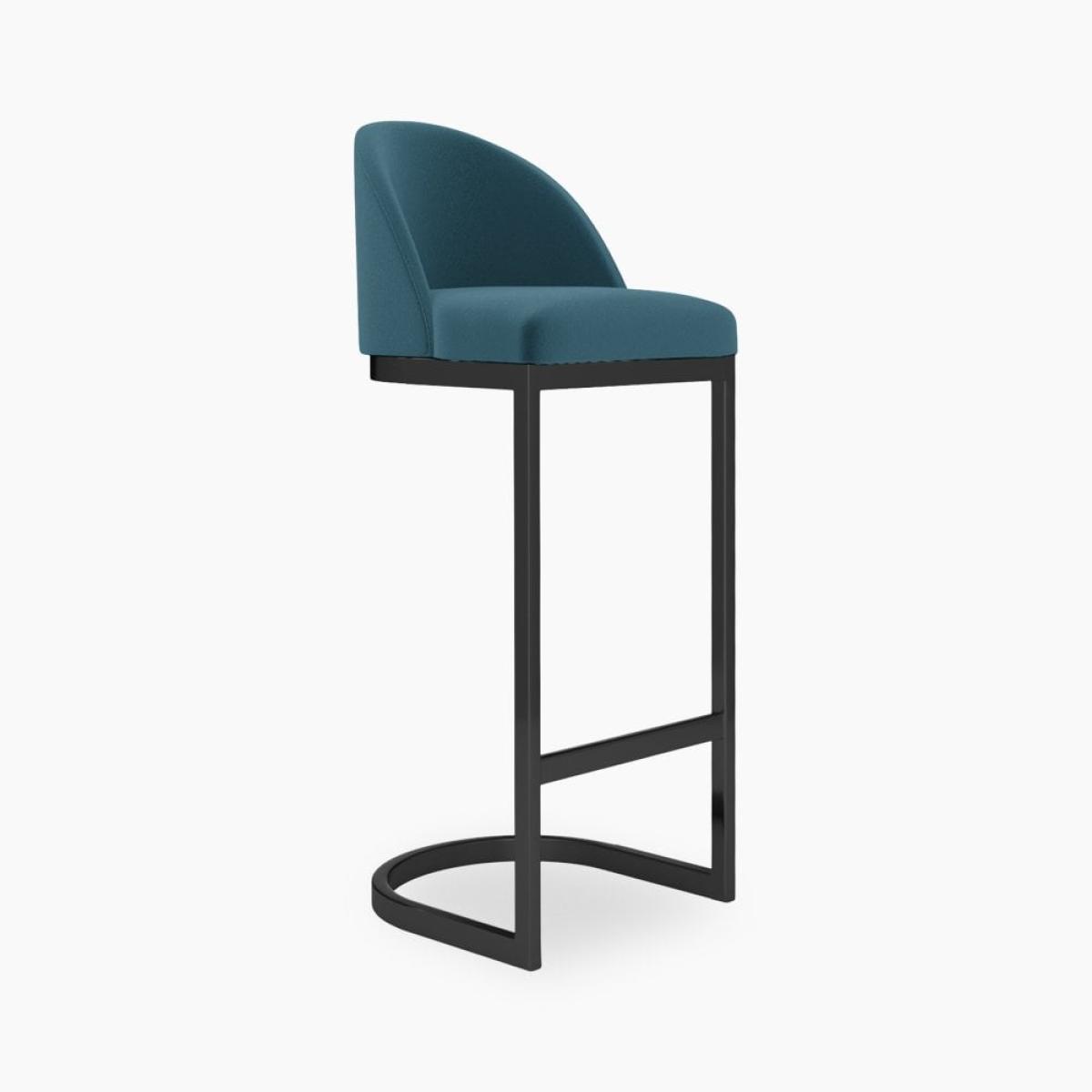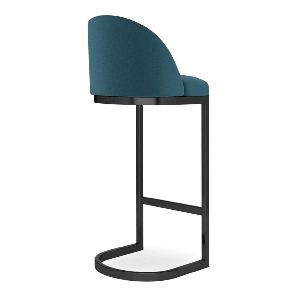 Matteo Bar Stool with Backrest, Midnight Blue Velvet Leg Colour: Black