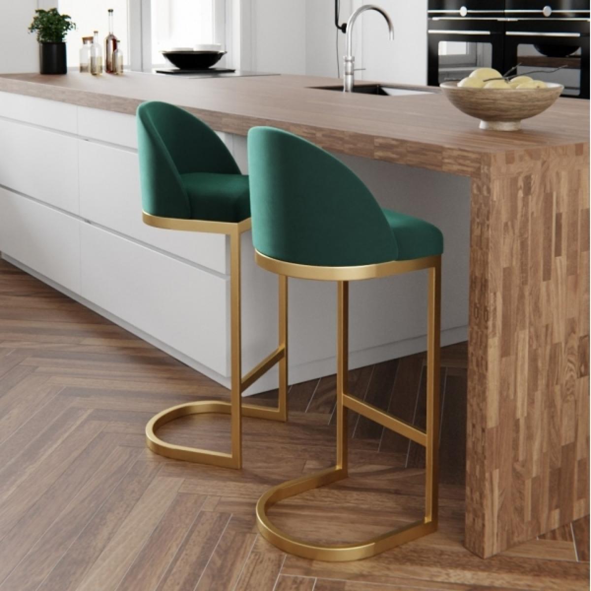 I love this stool’s bold teal velvet finish paired with the sleek black legs - it creates a sophisticated yet inviting look. It works well in contemporary or eclectic interiors where pops of colour and tactile fabrics add personality. Practical styling tips include pairing it with a marble or wooden breakfast bar to highlight its luxe vibe, and mixing in some metallic accents or warm woods elsewhere in the space to balance the richness of the velvet. Its backrest provides added comfort, making it ideal for longer casual dining or socialising, while the gold footrest adds a touch of glamour and durability. This stool is versatile enough to sit comfortably in modern kitchens, home bars, or even a stylish office breakout area.