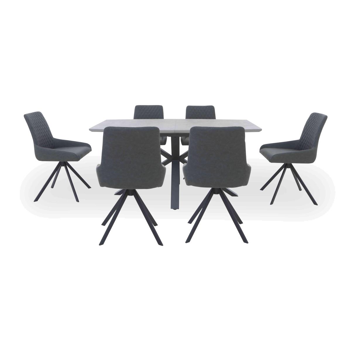Cool industrial style is yours at a really appealing price with our extensive Matteo range of living room and dining room furniture. And with its super-durable finish, it’s every bit at home in family spaces as it is in chic urban rooms. Choose from a wide range of dining tables, occasional tables and storage pieces with striking stone-effect tops and black metal bases, or create your dream dining set by combining one of Matteo’s four dining tables and extending dining tables with your favourite style of dining chair. Too much choice? We’ve already created a selection of Matteo dining tables which we think you’ll love. Online only at Furniture Village. You’ll always dine in style – cool, modern industrial style – with this dining set. The dining table extends to seat eight and the set includes six dining chairs. Why you'll love it Modern urban design at an incredible price. Boat-shaped dining table seats 8. Extends with an extra leaf that pops into place. Stone-effect table top is striking and stylish. It’s also very hardwearing – it's heat-resistant, scratch-resistant and chip-resistant. The black metal base completes this table’s industrial-style look. Easy on the eye for entertaining, easy-clean finish for everyday dining. Dining set includes 6 dining chairs. Chairs have comfortably curved and cushioned seats. Upholstered in soft faux leather with quilted stitching detail. An online only exclusive. This dining set is part of the Matteo range. What you need to know Chairs have metal frames and legs, and foam cushioning. The dining table seats 6 closed and extends to seat 8. Please note that the table top is not 100% heatproof. We recommend using coasters and placemats at all times. For the very best in industrial furniture, browse our extensive Matteo collection.