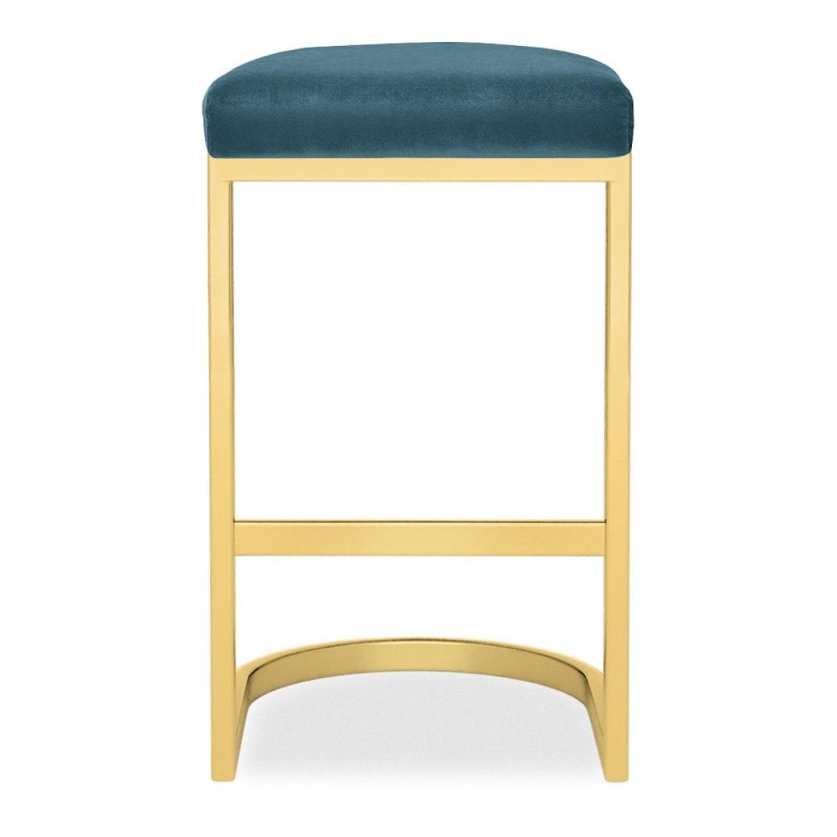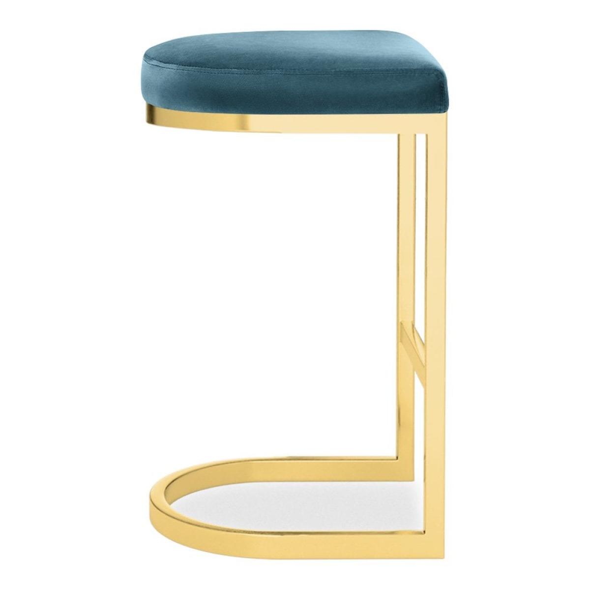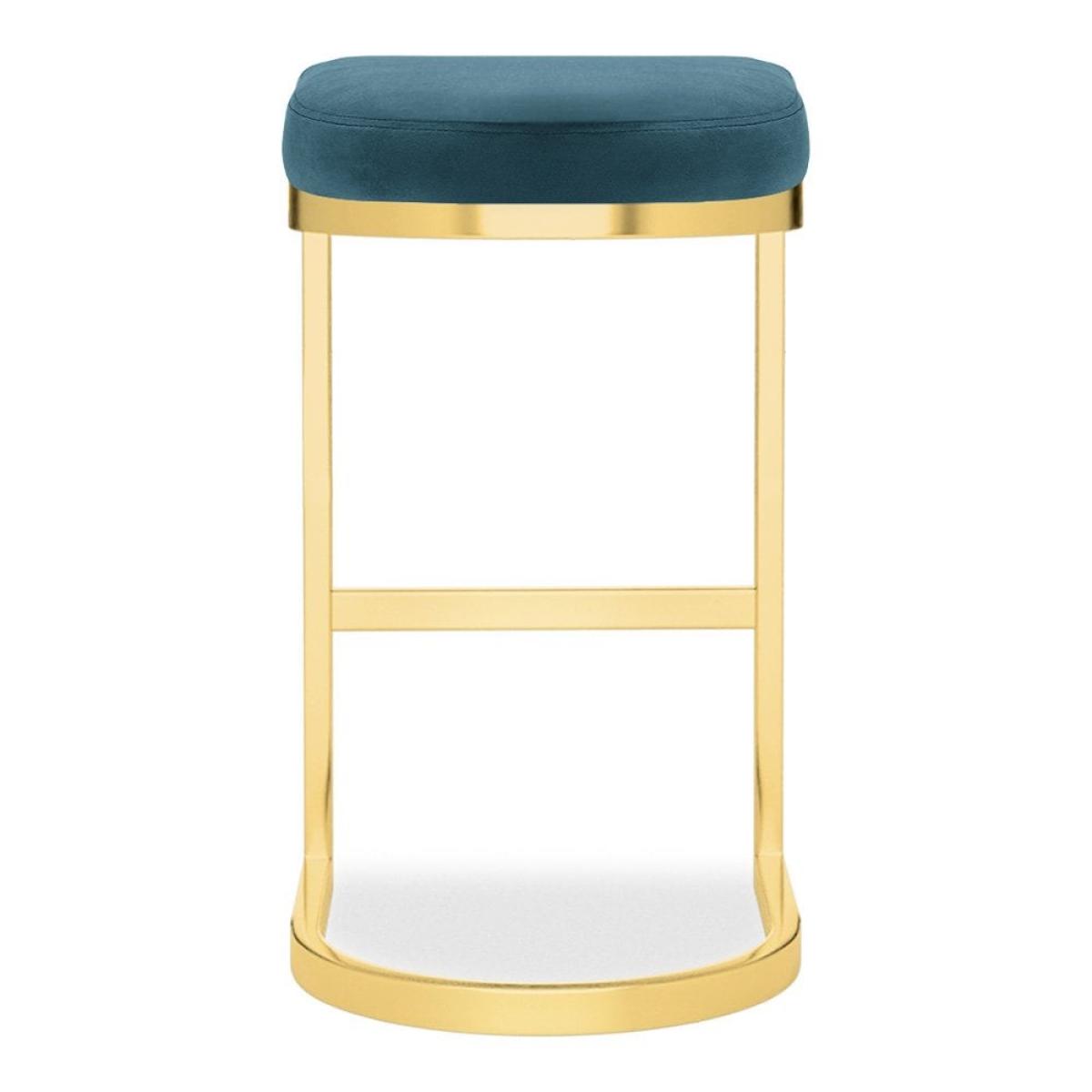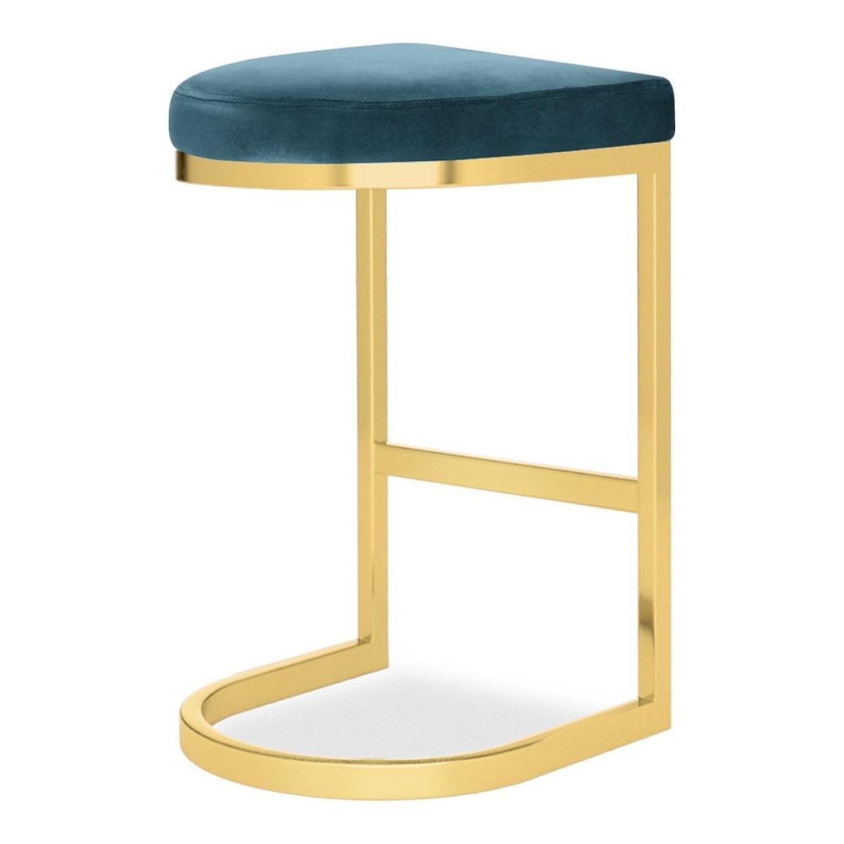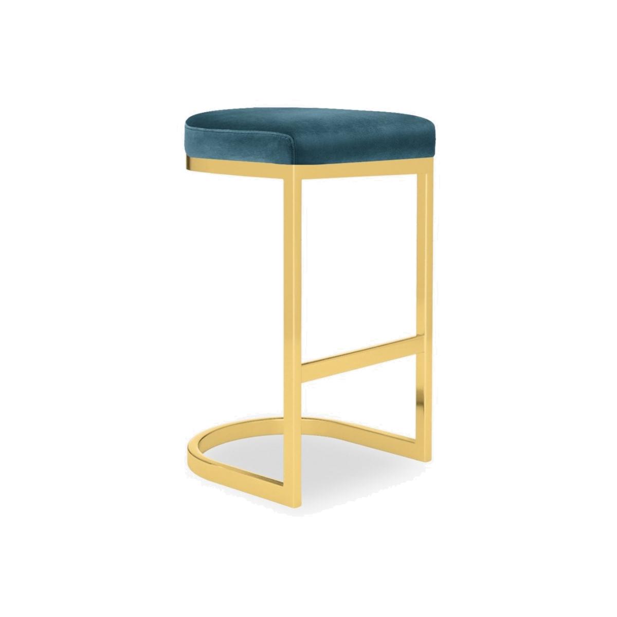 Matteo Kitchen Stool, Midnight Blue Velvet Leg Colour: Brass