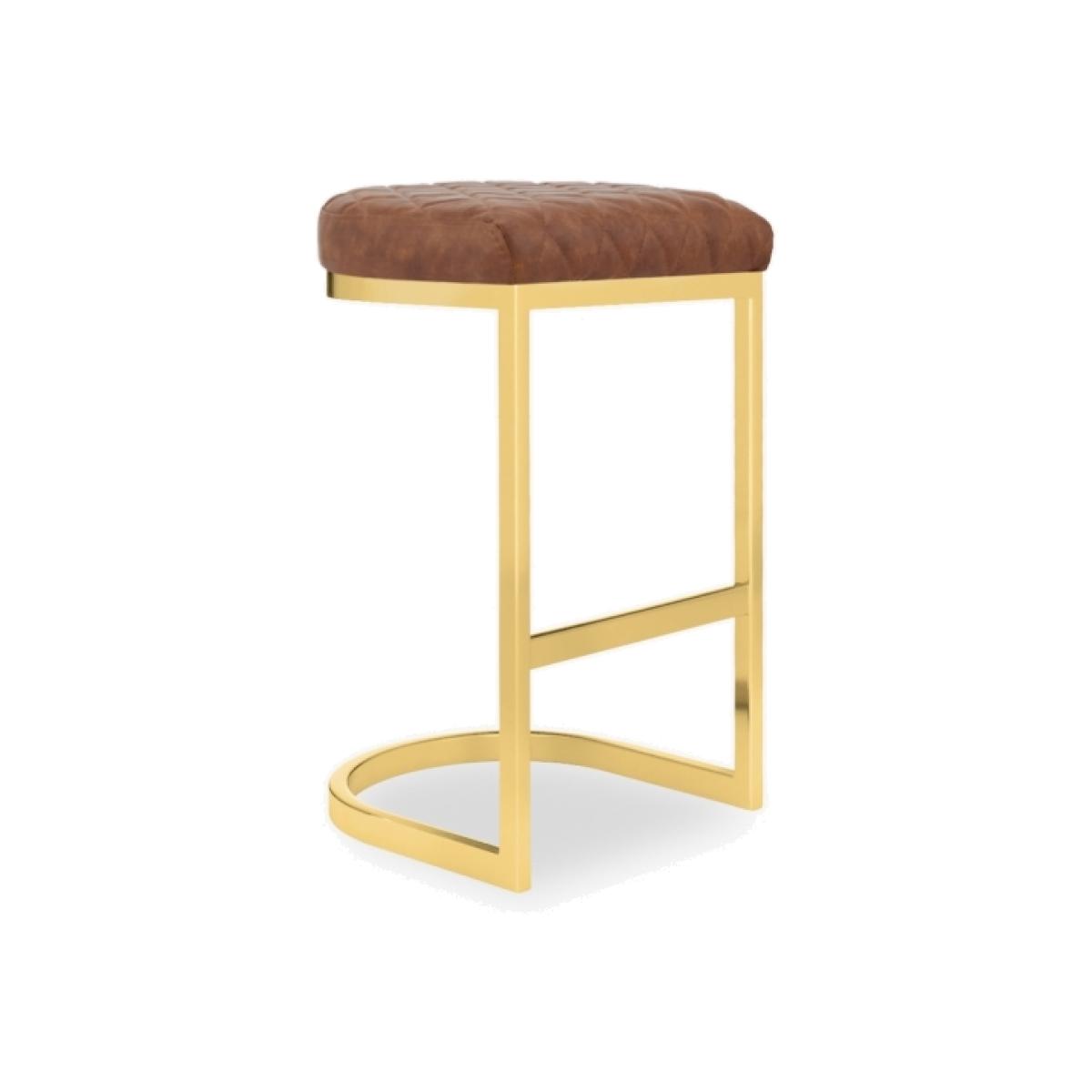 Matteo Kitchen Stool, Tan Leg Colour: Brass