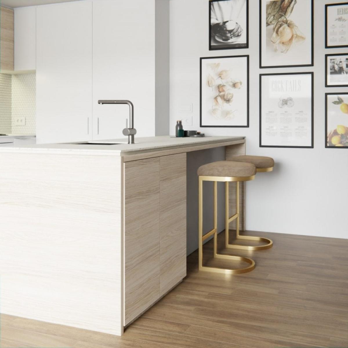 I love this barstool for its contemporary yet versatile design. The taupe recycled velvet is both stylish and eco-friendly, making it a great choice for sustainable interiors or modern open-plan kitchens. Its neutral tone and soft texture work well in a variety of schemes, from minimalist to eclectic. For styling, pair it with marble or timber worktops to elevate the look, or combine it with other earthy tones for a calming vibe. Practical tips include using it around a breakfast bar or informal dining space, and considering a matching set for visual consistency. Its compact size and clean lines make it both functional and elegant, perfect for creating a comfortable, contemporary feel in the home.
