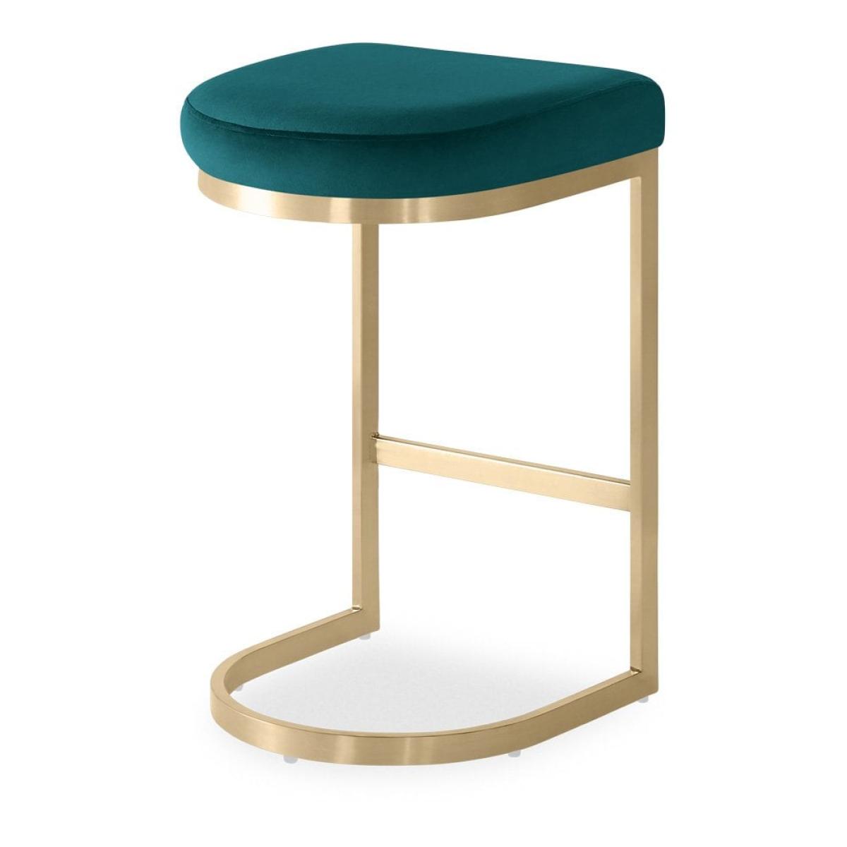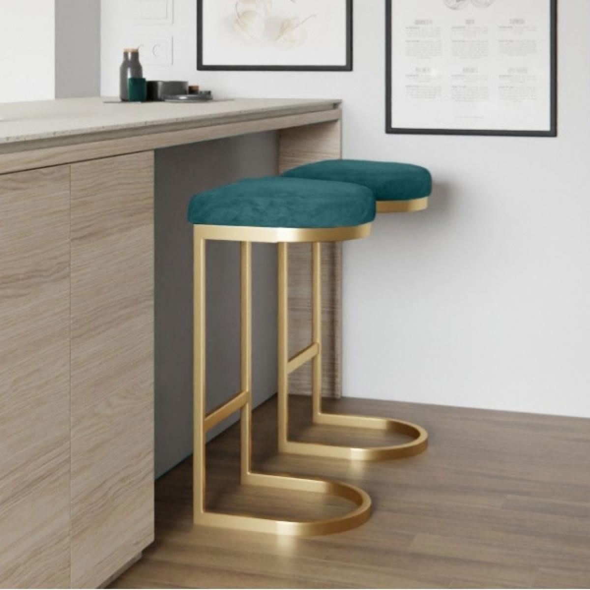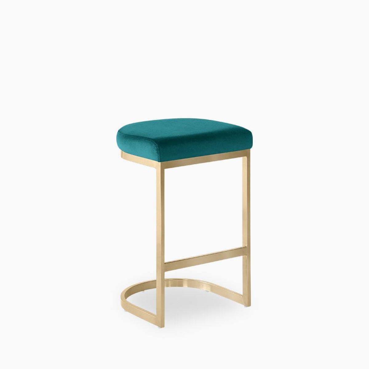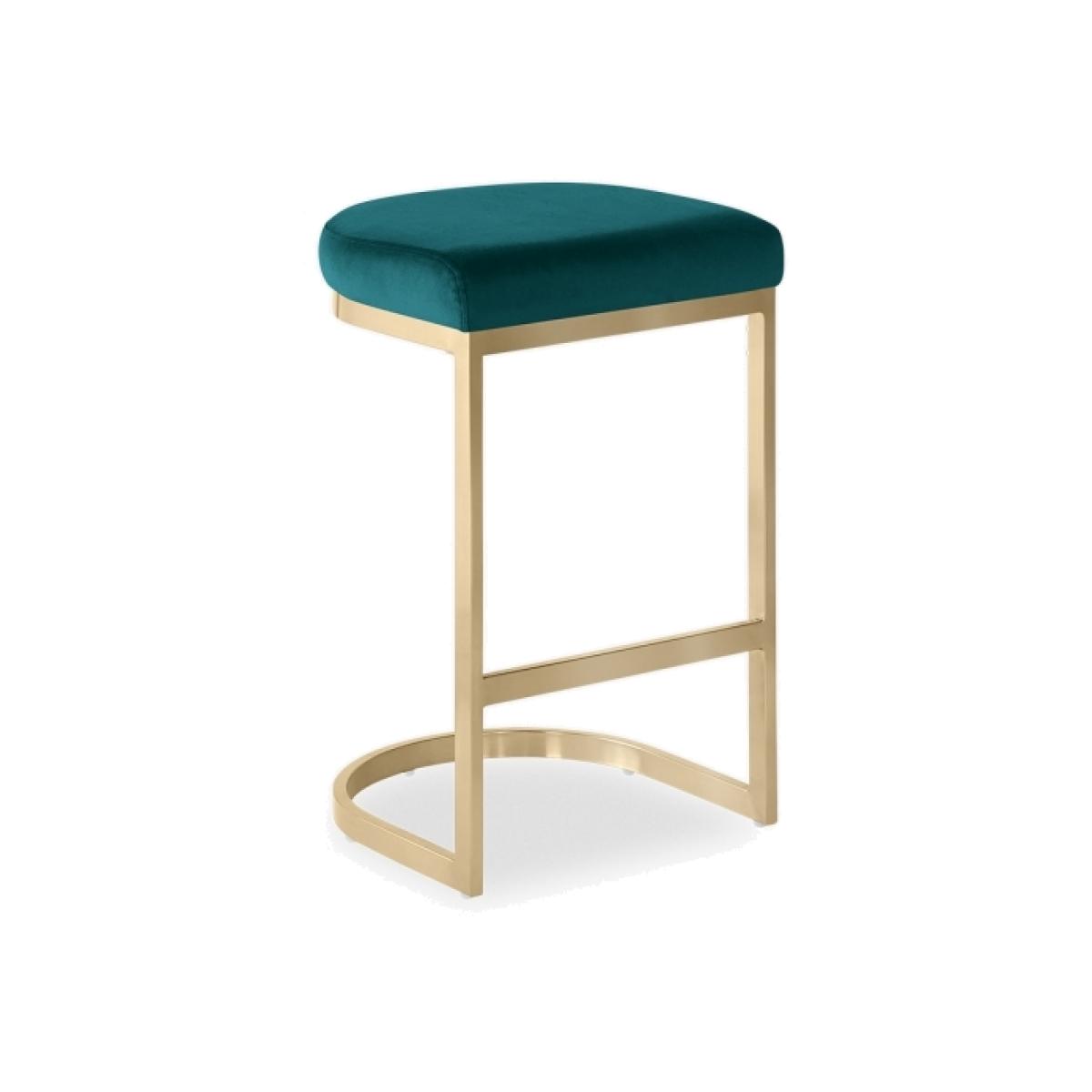 Matteo Kitchen Stool, Teal Recycled Velvet Leg Colour: Brass