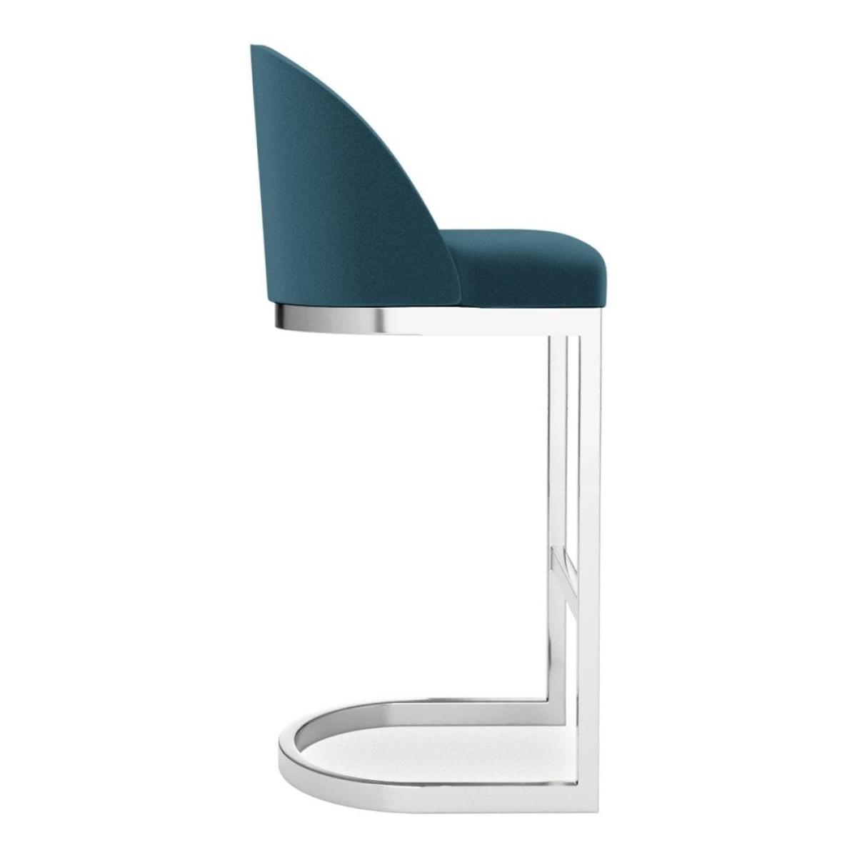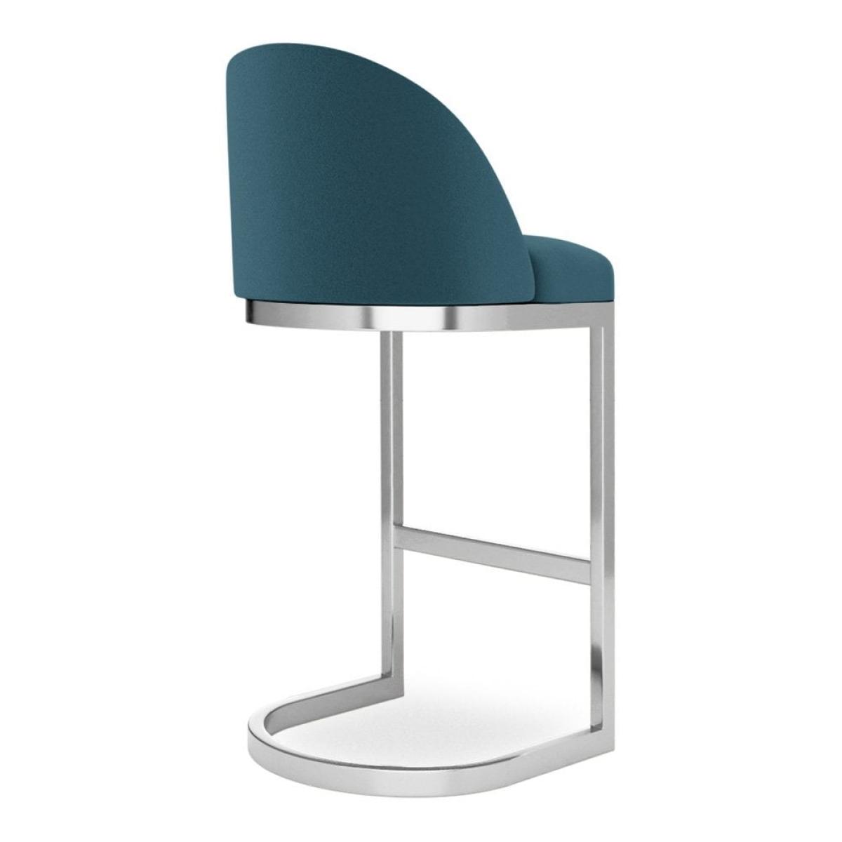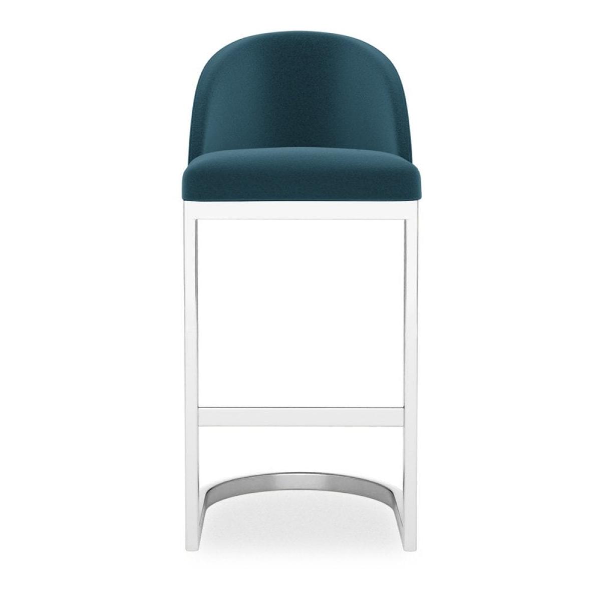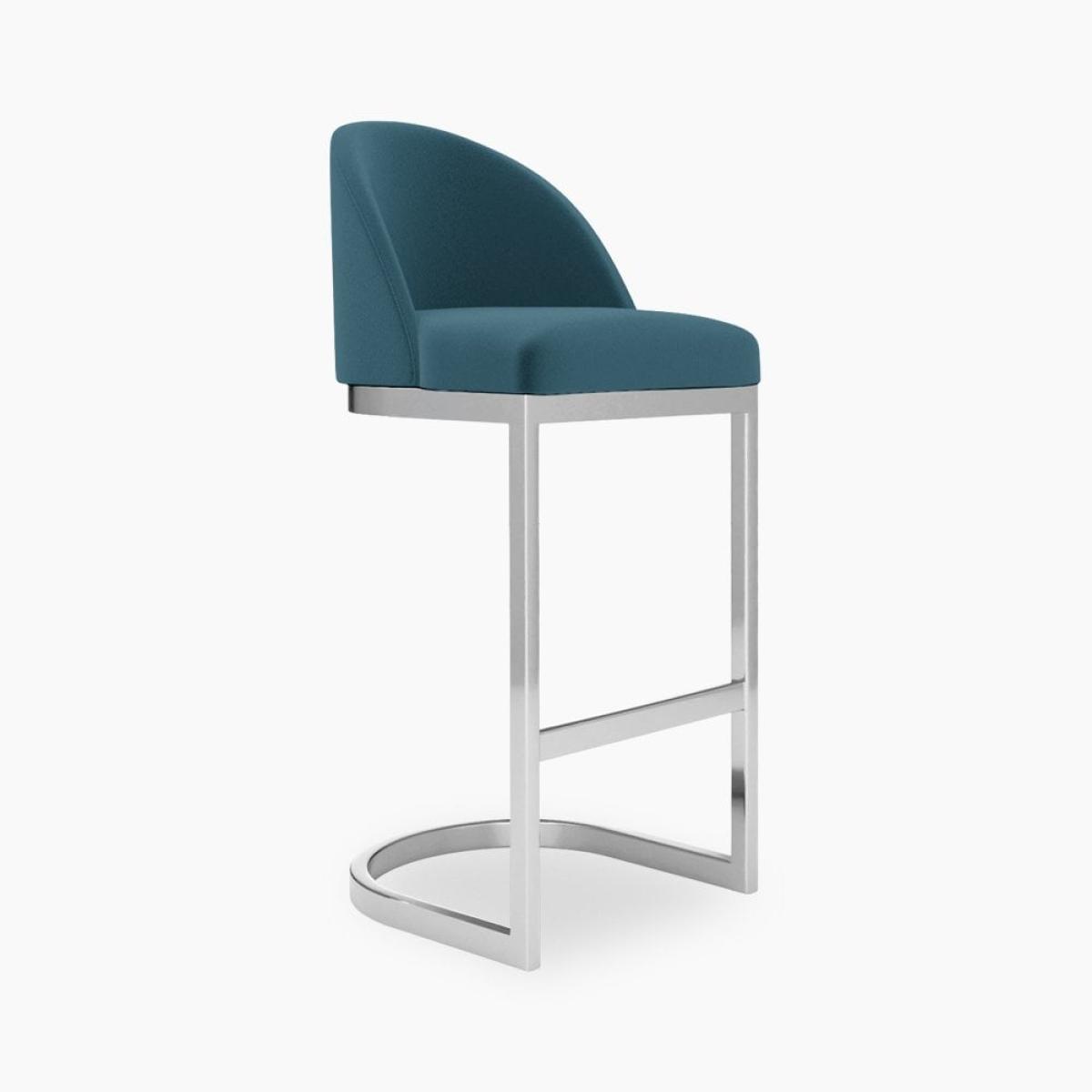 Matteo Kitchen Stool with Backrest, Midnight Blue Velvet Leg Colour: Chrome