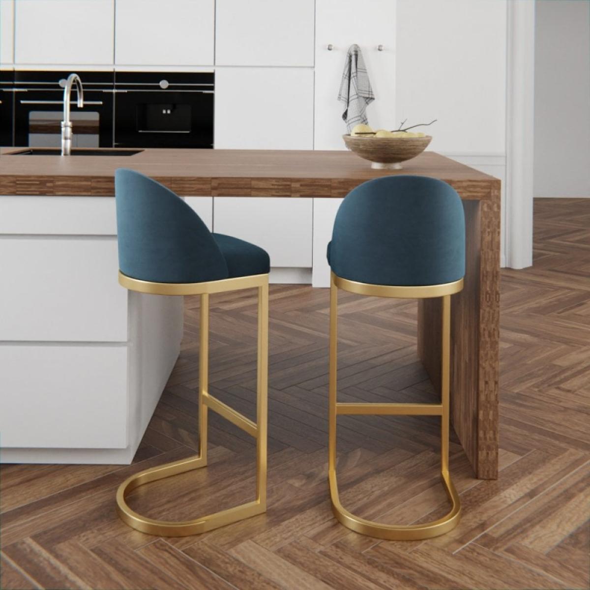The Matteo metal kitchen stool in midnight blue velvet brings luxury furniture into your home. The thick brushed metal base of the stool is in a curved design with built-in footrest, perfect for perching at the breakfast island. The Matteo range features a padded seat and curved backrest. The result is a contemporary style that adds luxe design without compromising on comfort. View The Matteo Range