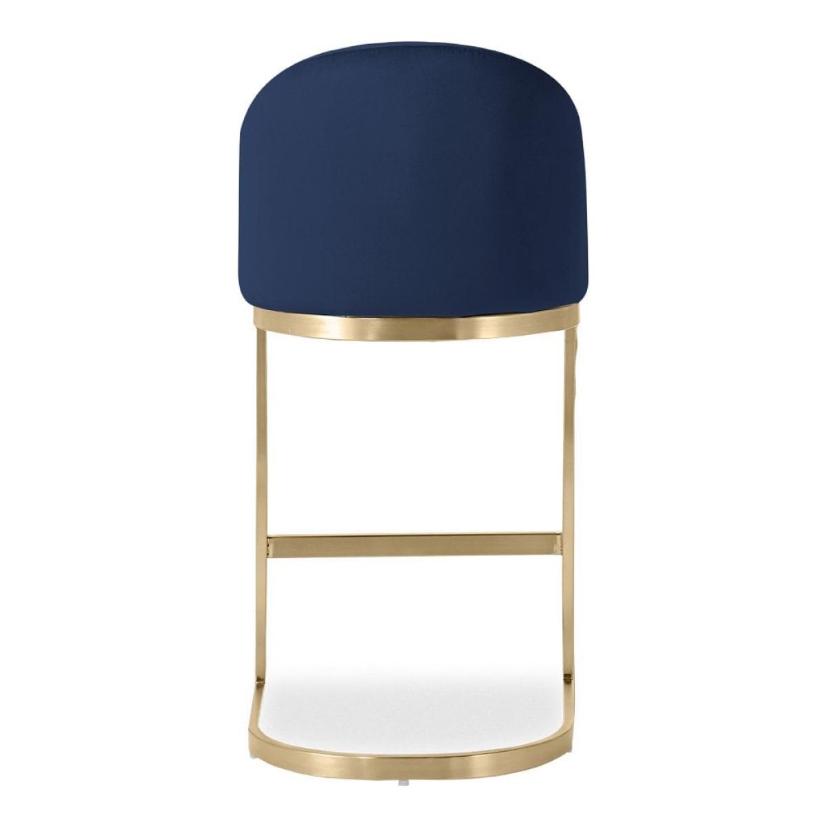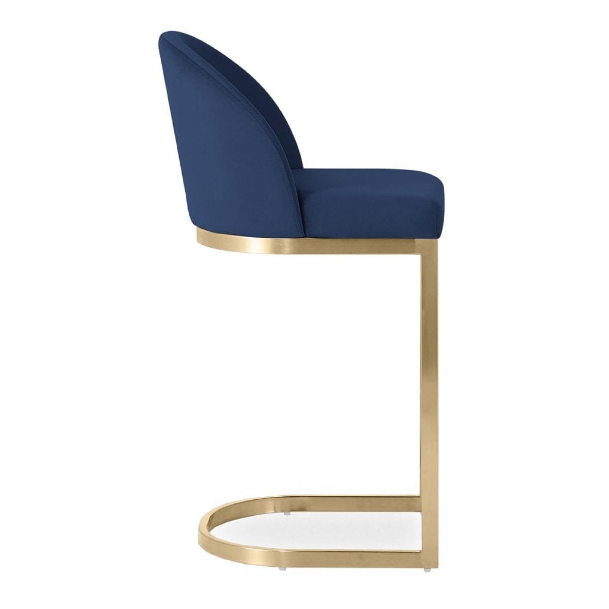 Matteo Kitchen Stool with Backrest, Royal Blue Recycled Velvet Leg Colour: Brass