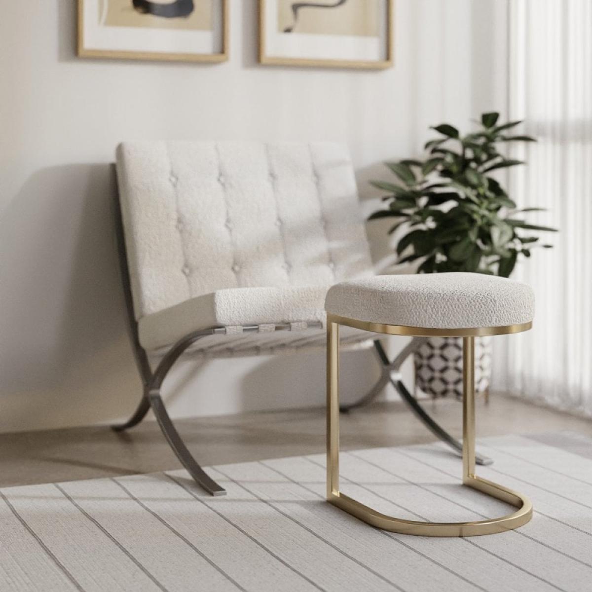 Matteo Low Stool, Ivory White Boucle Leg Colour: Brass