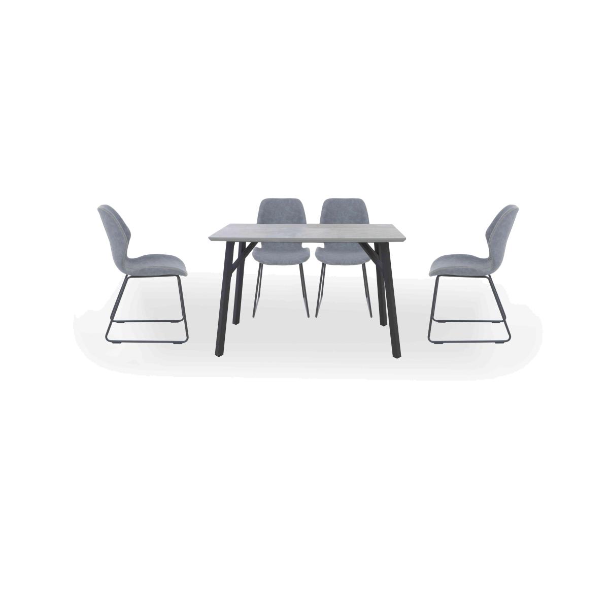 Cool industrial style is yours at a really appealing price with our extensive Matteo range of living room and dining room furniture. And with its super-durable finish, it’s every bit at home in family spaces as it is in chic urban rooms. Choose from a wide range of dining tables, occasional tables and storage pieces with striking stone-effect tops and black metal bases, or create your dream dining set by combining one of Matteo’s four dining tables and extending dining tables with your favourite style of dining chair. Too much choice? We’ve already created a selection of Matteo dining tables which we think you’ll love. Online only at Furniture Village. Cool urban design meets family-friendly durability in this dining set which includes a stone-effect and black metal dining table and four ski leg dining chairs. Why you'll love it Modern urban design at an incredible price. The dining table’s stone-effect table top is striking and stylish. It’s also very hardwearing – it's heat-resistant, scratch-resistant and chip-resistant. The black metal legs complete this table’s industrial-style look. Easy on the eye for entertaining, easy-clean finish for everyday dining. Dining set includes 4 dining chairs with black metal ski legs. Chairs have comfortably curved and cushioned seats. Soft faux leather upholstery in a choice of colour. An online only exclusive. This rectangular dining set is part of the Matteo range. What you need to know Chairs have metal frames and legs, and foam cushioning. The dining table seats 6. Please note that the table top is not 100% heatproof. We recommend using coasters and placemats at all times. For the very best in industrial furniture, browse our extensive Matteo collection.