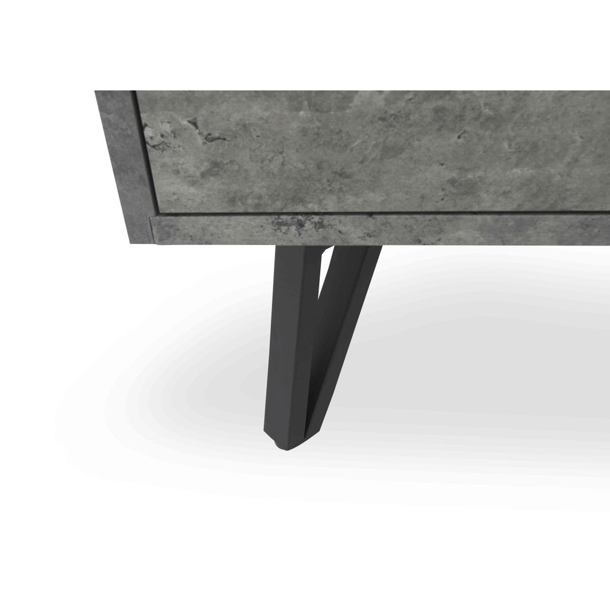 Cool industrial style is yours at a really appealing price with our extensive Matteo range of living room and dining room furniture. And with its super-durable finish, it’s every bit at home in family spaces as it is in chic urban rooms. Choose from a wide range of dining tables, occasional tables and storage pieces with striking stone-effect tops and black metal bases, or create your dream dining set by combining one of Matteo’s four dining tables and extending dining tables with your favourite style of dining chair. Too much choice? We’ve already created a selection of Matteo dining tables which we think you’ll love. Online only at Furniture Village. If your TV is the focal point of your living room, give it extra impact by placing it on this industrial-look TV cabinet. Cool urban style at a great-value price. Why you'll love it Modern urban design at an incredible price. Stone-effect finish is striking and stylish. It’s also very hardwearing – it's heat-resistant, scratch-resistant and chip-resistant. The black metal legs complete this TV cabinet’s industrial-style look. Plenty of storage space – large alcove and 2 push-to-open soft-closing drawers. An online only exclusive. This TV cabinet is part of the Matteo range. What you need to know Please note that the finish is not 100% heatproof. We recommend using coasters and placemats at all times. For the very best in industrial furniture, browse our extensive Matteo collection.