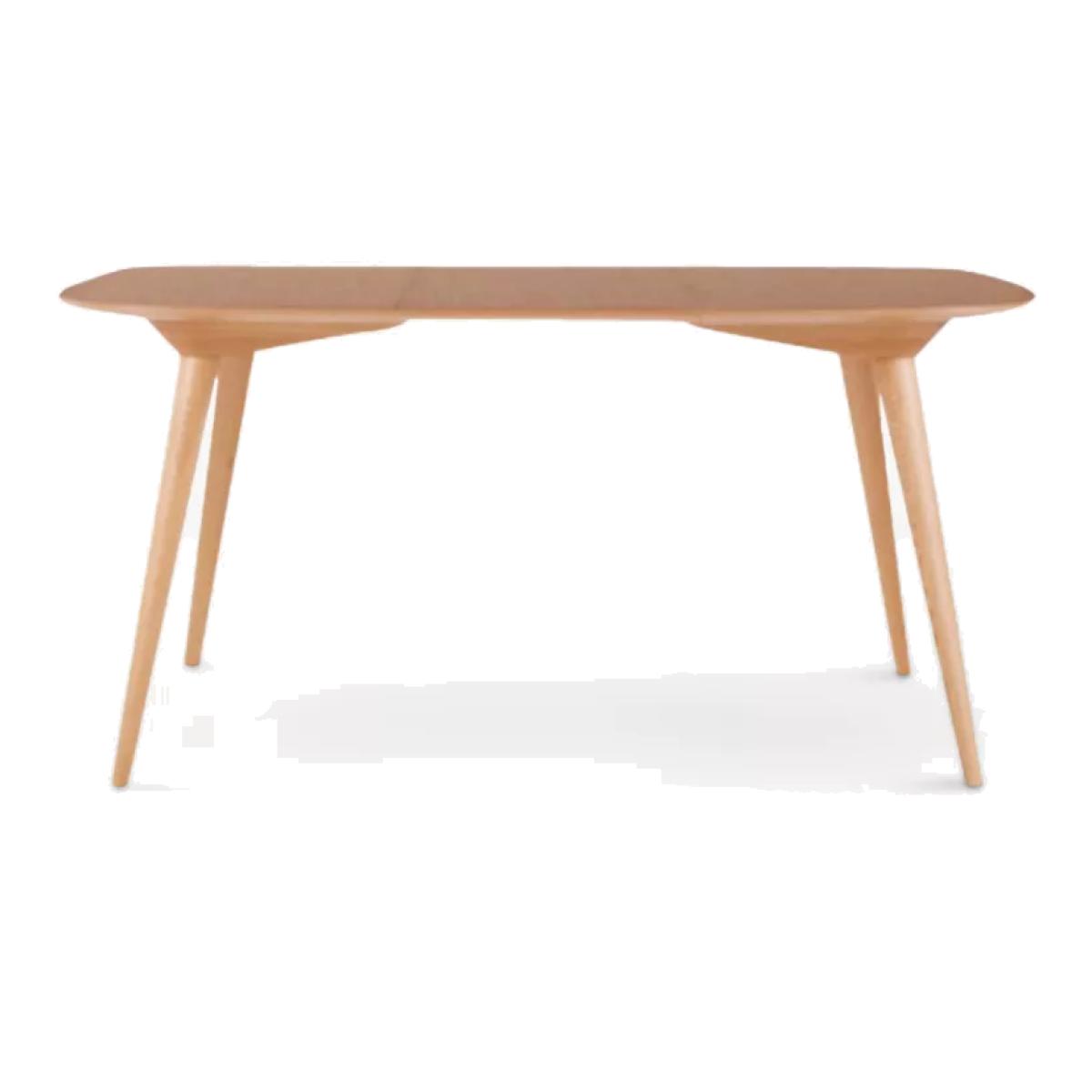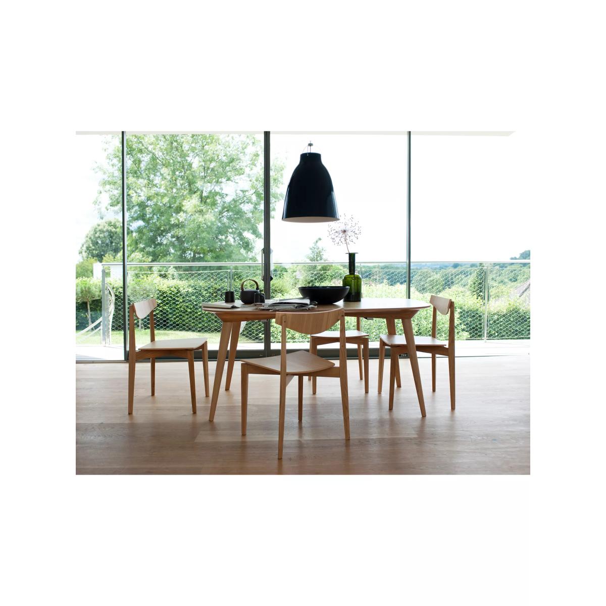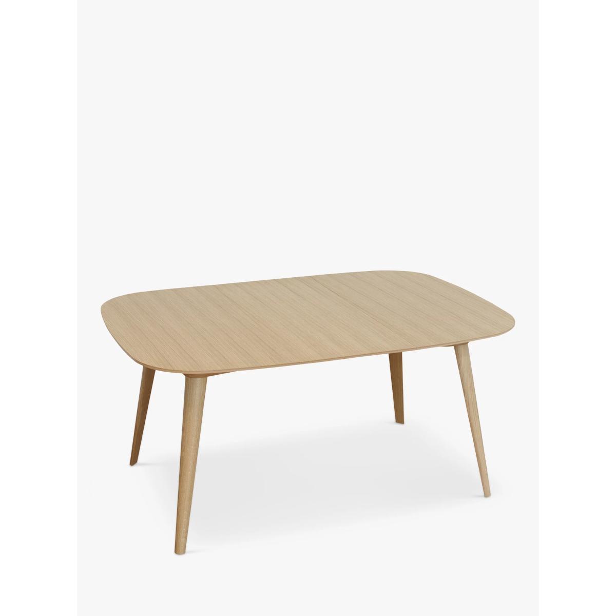 Created by award-winning furniture designer Matthew Hilton, the Bridge Extending Dining Table is a contemporary and versatile table built for modern living. Designed with gently tapered solid wood legs and a veneered table top, the supporting frame arcs underneath the table top similar to a bridge formation, allowing the legs to face outwards to maximise leg room underneath. Fusing modern design and functionality, this 1.6m table extends to an impressive 2.6m and seats up to a maximum of 10 people. (Extension leaves should be stored externally). Want to see it first? You may want to see and get a feel for the furniture in one of our shops before ordering. We'll be able to tell you where the range you'd like to view is on display.