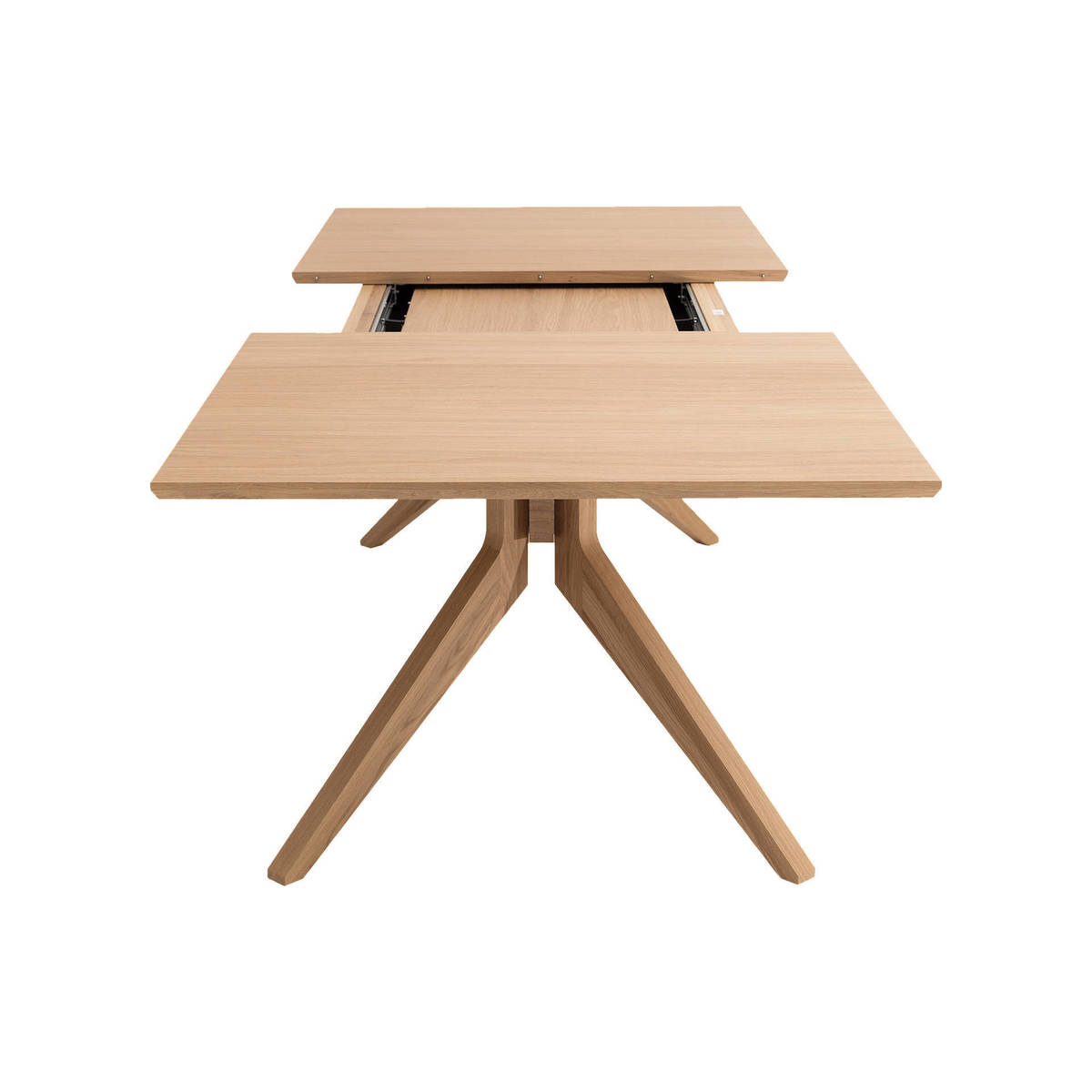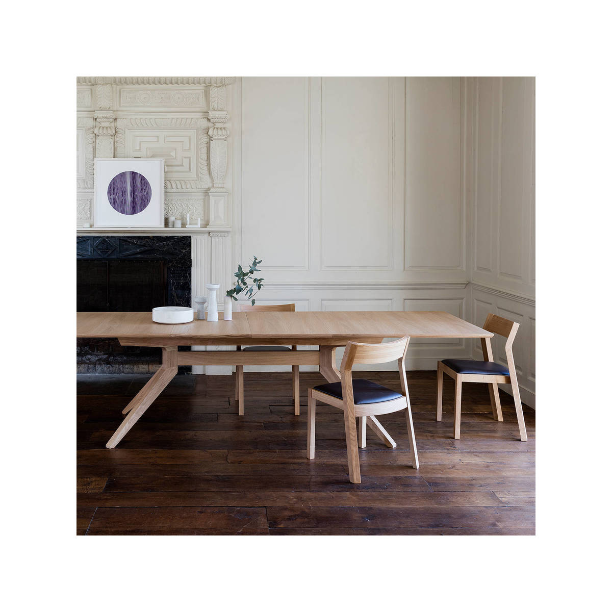 The award-winning Cross Extending Dining Table by Matthew Hilton is a fine example of advanced wood manufacturing techniques. The elegant lines of this modern design create a distinctly up-to-date piece which is practical and adaptable. Made from solid wood with a veneered chamfered edged top, it has two extendable leaves (each 50cm) to seat up to 14 members of the family around it. The table can be extended to three sizes (2m, 2.5m and 3m) so you can accommodate any occasion. It's comfortably large, yet retains a visual balance due to the proportions of the table top. The functional design of the base is sturdy, handsome and built for multiple uses. Matthew Hilton worked as an industrial designer and model maker until 1984 when he set up his own design studio/workshop. Two years later he launched a series of shelves at the Milan Furniture Fair, and in 1991 he designed the Balzac Armchair, which was embraced as a modern classic. Since then, Hilton's work has taken on a less stylistic, more functional approach. Please note: not all our ranges are on display in our shops.
