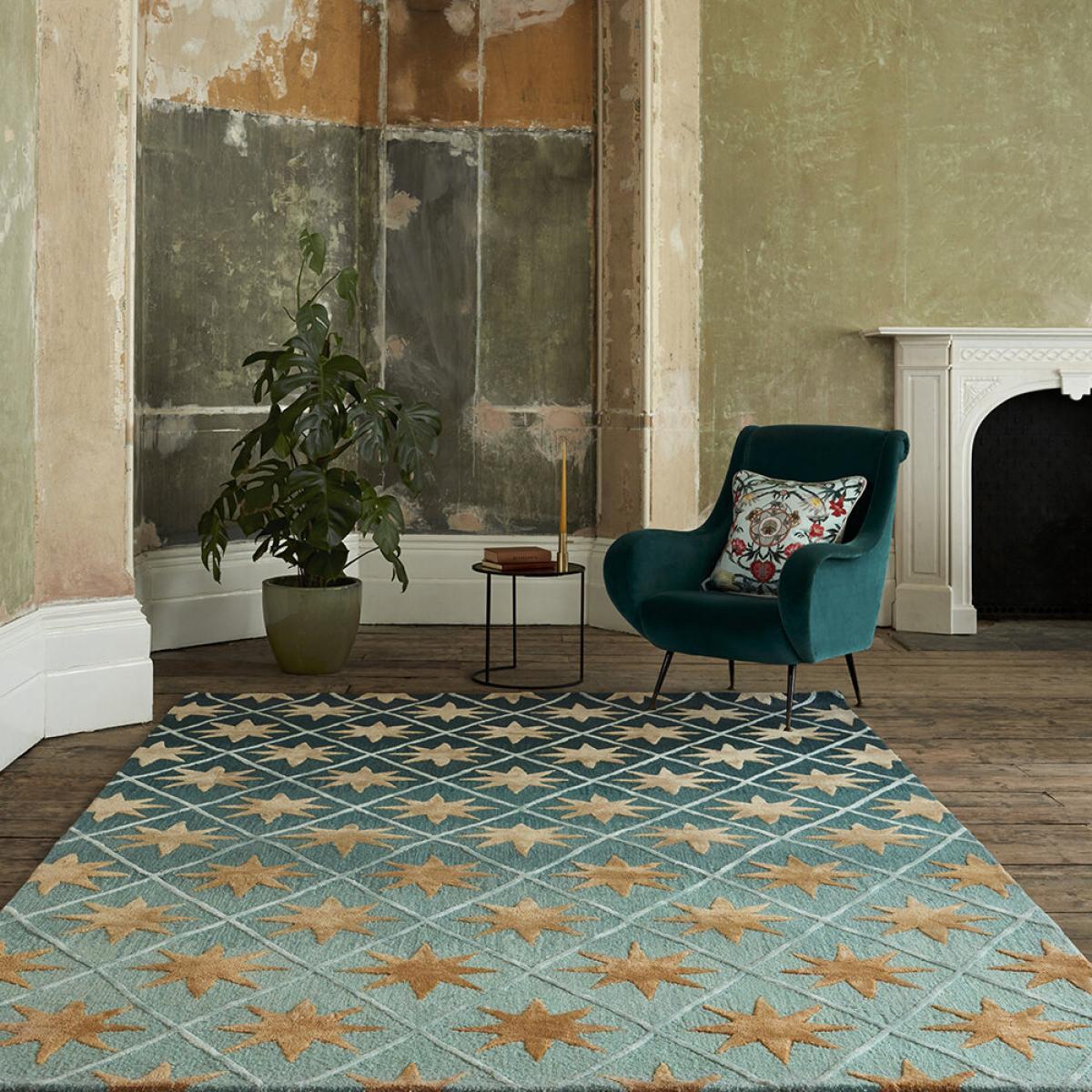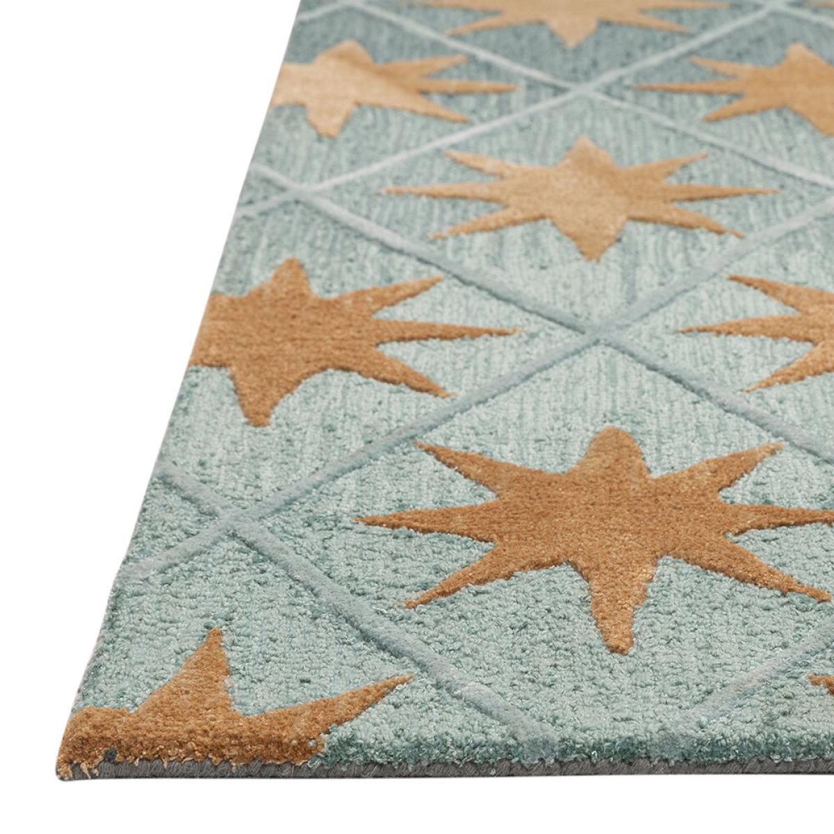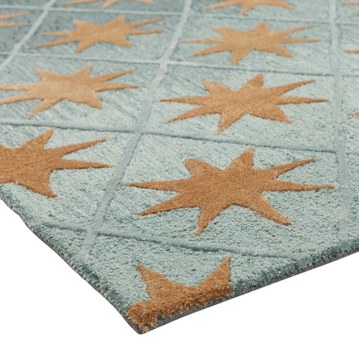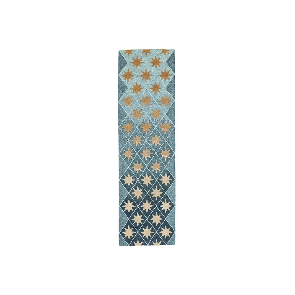 Make a statement in the home with this Atlas Sky rug from Matthew Williamson. Handmade in India by skilled artisans from a luxurious blend of New Zealand wool and viscose, it features a geometric star design in elegant blue and gold tones. Key features: * Material: 34% New Zealand wool, 66% viscose * Dimensions: 67x230cm * Geometric design * With star motifs * In blue and gold tones * Inspired by the architecture of Moroccan riads * Handmade by skilled artisans in India