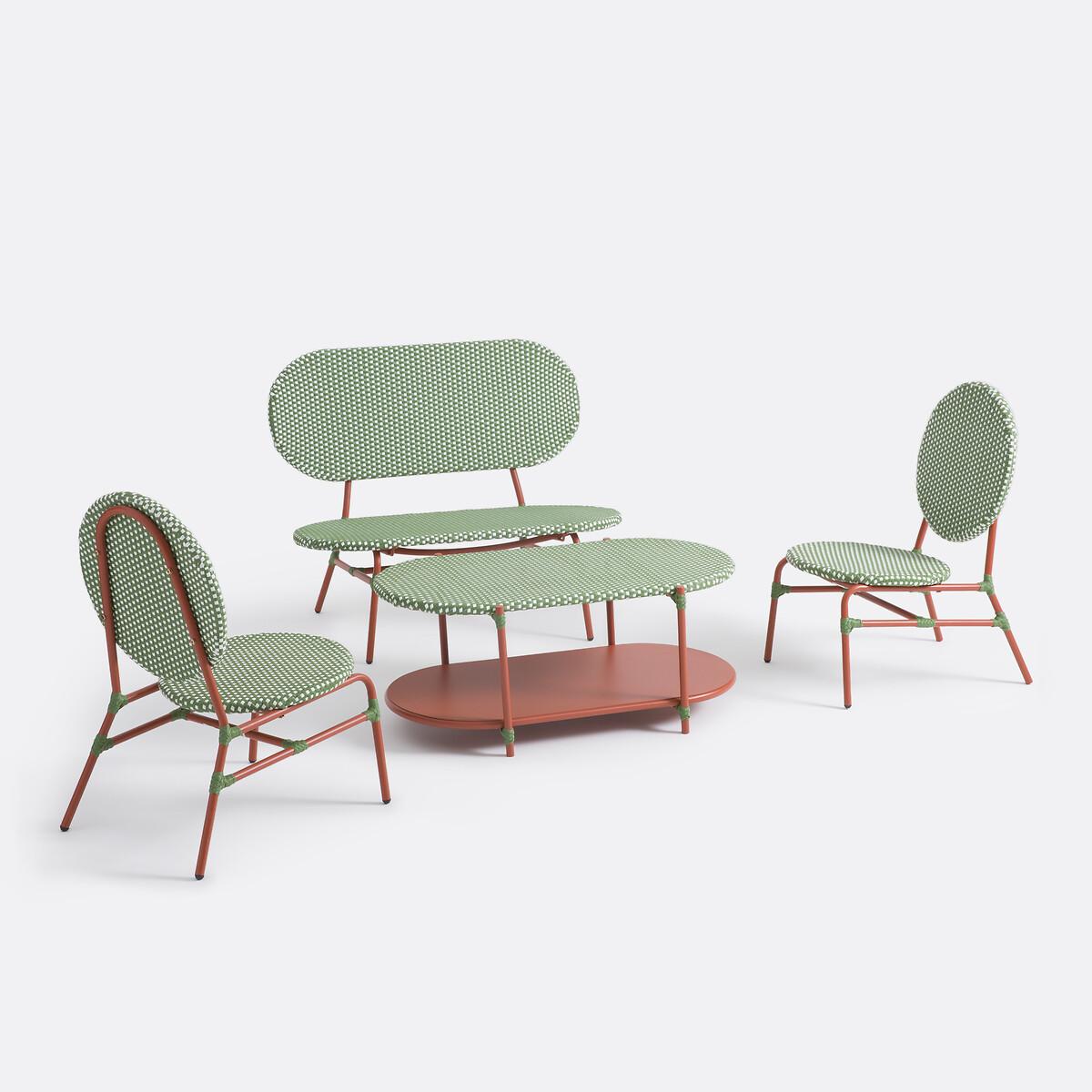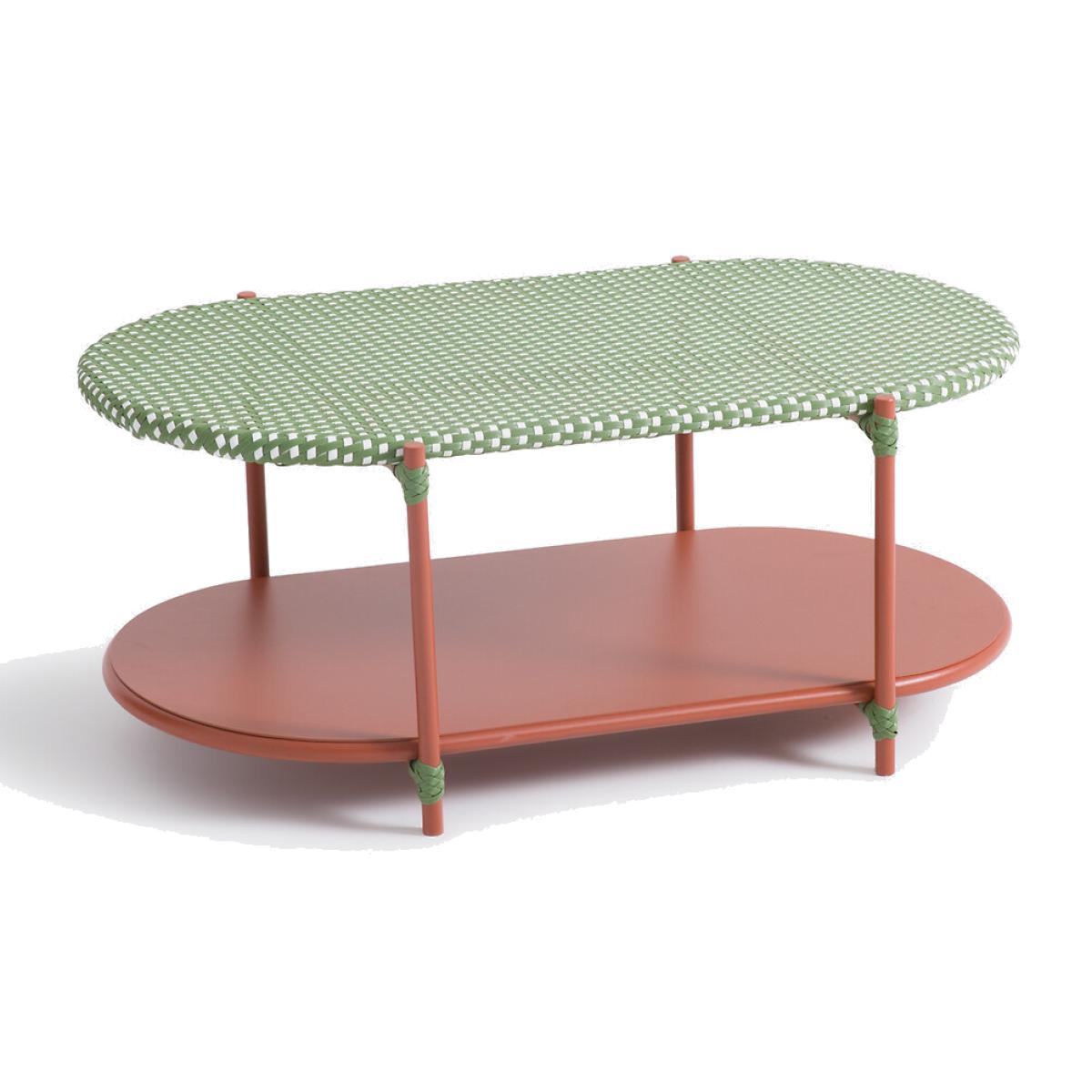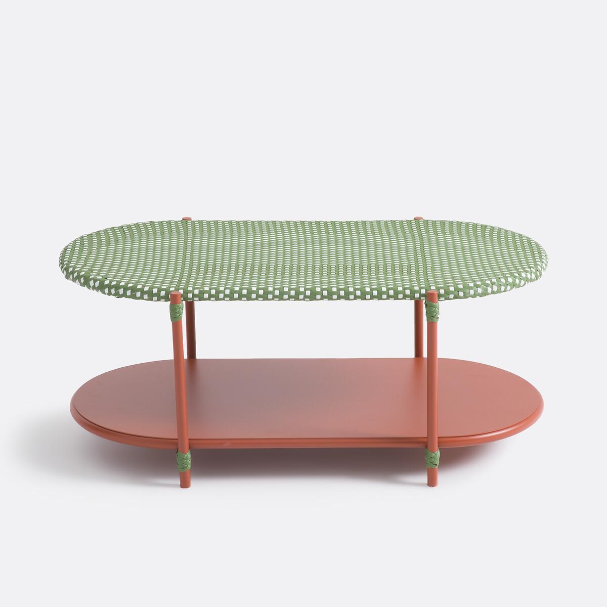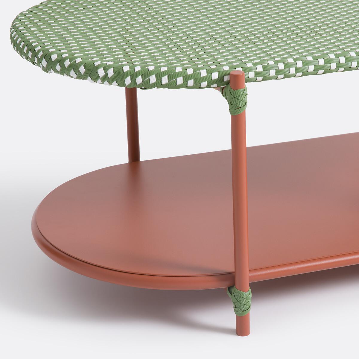 With its green and white woven resin table top and terracotta galvanised steel frame, the Matu garden coffee table brings a contemporary touch to your outdoor space. Timeless design by La Redoute Intérieurs. Product Details • Galvanised steel structure, epoxy finish • Upper table top in woven polyethylene resin • Lower shelf in galvanised steel. Dimensions • Length: 100cm • Height: 43cm • Depth: 54cm • Weight: 14kg. Quality • The steel has been treated for anti-corrosion and is epoxy-painted, making it easy to maintain and resistant to the elements. • The woven resin is resistant to bad weather, temperature variations and UV rays.. Its lifespan will nevertheless depend on its exposure to UV rays, lunar rays and temperature variations. To maintain the braided resin, simply wash it with a soft sponge in soapy water. • This product requires assembly. Dimensions and weight of parcel • 1 parcel • L107 x H50 x D61 cm, 17.2kg