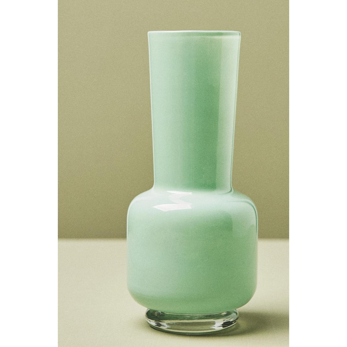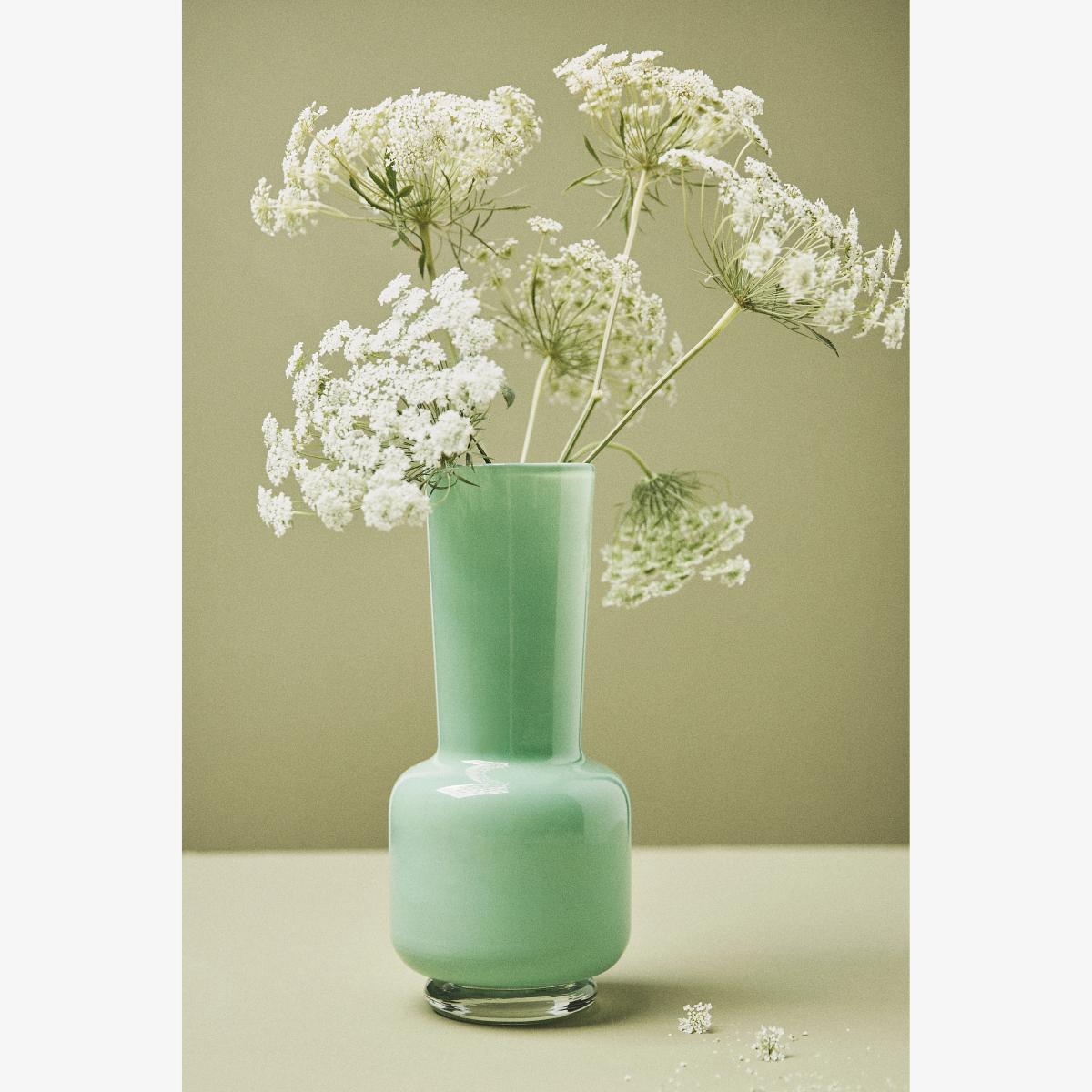 I love this vase for its sculptural form and soft mint hue, which brings a modern yet understated elegance to any space. It works particularly well in contemporary or minimalist interiors, where its distinctive shape can serve as a statement piece. To style it effectively, try pairing it with simple, seasonal blooms or greenery - its design can stand on its own as a sculptural object if you prefer a more pared-back look. Practical tip: use it as a centrepiece on a dining table or a console, where its shape and colour can be appreciated from all angles. Its balanced proportions make it versatile, whether filled with a burst of fresh flowers or left empty to highlight its unique silhouette.