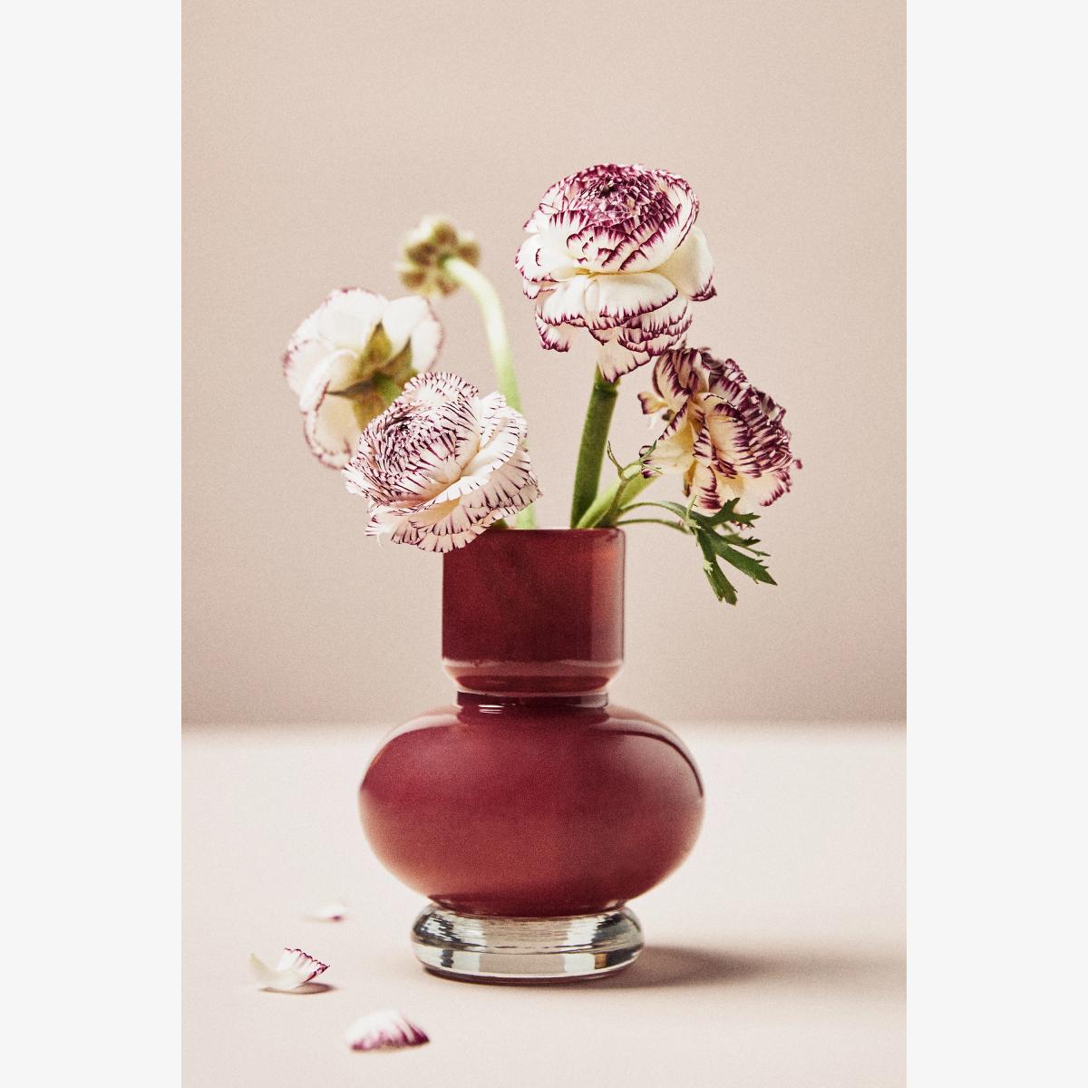 I love this vase for its sculptural presence and unique glasswork, which makes it a statement piece even on its own. It works particularly well in contemporary or minimalist interiors, where its geometric shape and rich colour can add a touch of sophistication. For styling, I recommend keeping floral arrangements simple-think tall, single-stemmed flowers or a few understated blooms-to let the vase’s form shine. It's also versatile enough to work as a standalone decorative object in a bookshelf or side table, adding visual interest without overcrowding. The deep hue and elegant silhouette make it a great fit for living rooms, bedrooms, or even entryways to introduce colour and texture naturally.
