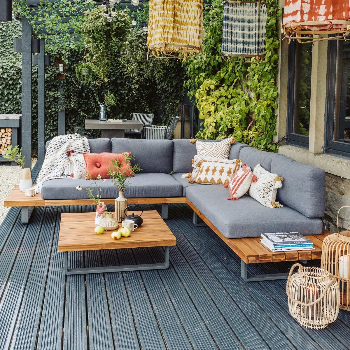 I’m a fan of how the Maui sofa’s blend of teak platforms and slim metal legs gives it a crisp, modern look that still feels warm. The neutral grey cushions work well in a range of schemes - from Scandi-style patios to urban terraces - and the low profile helps smaller gardens feel more spacious. For styling, keep accessories simple: layer a couple of textured cushions in natural tones or muted greens, and drape a lightweight throw over one arm. A low planter box of ornamental grasses or a slim metal side table will complement the lines of the sofa without overcrowding. Finish with a soft outdoor rug to define the seating area and add warmth underfoot.