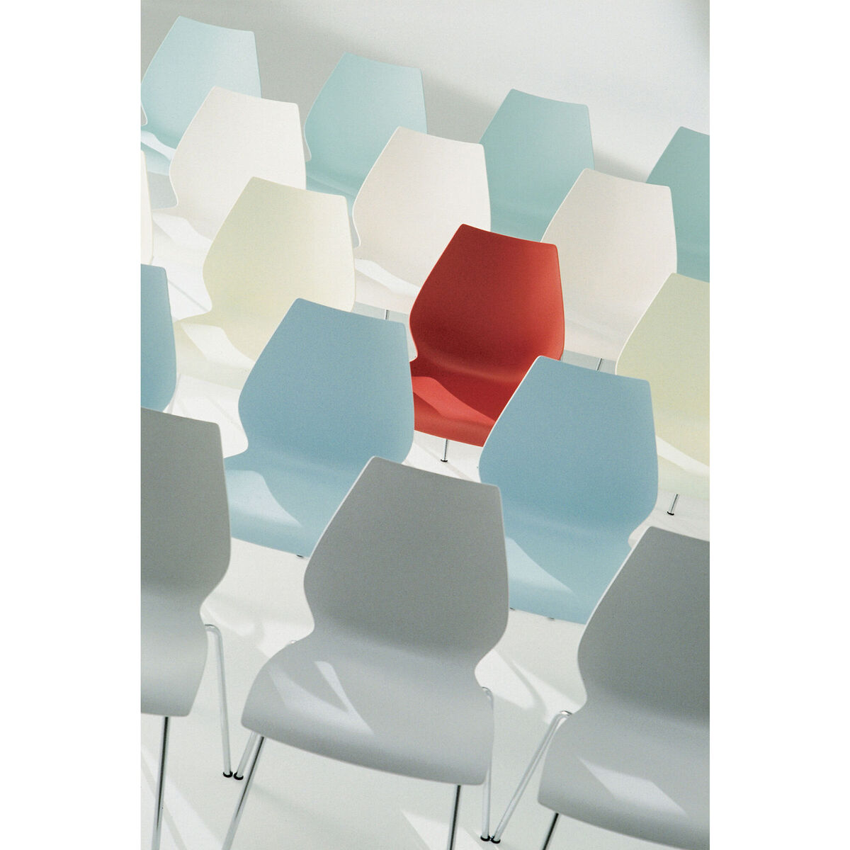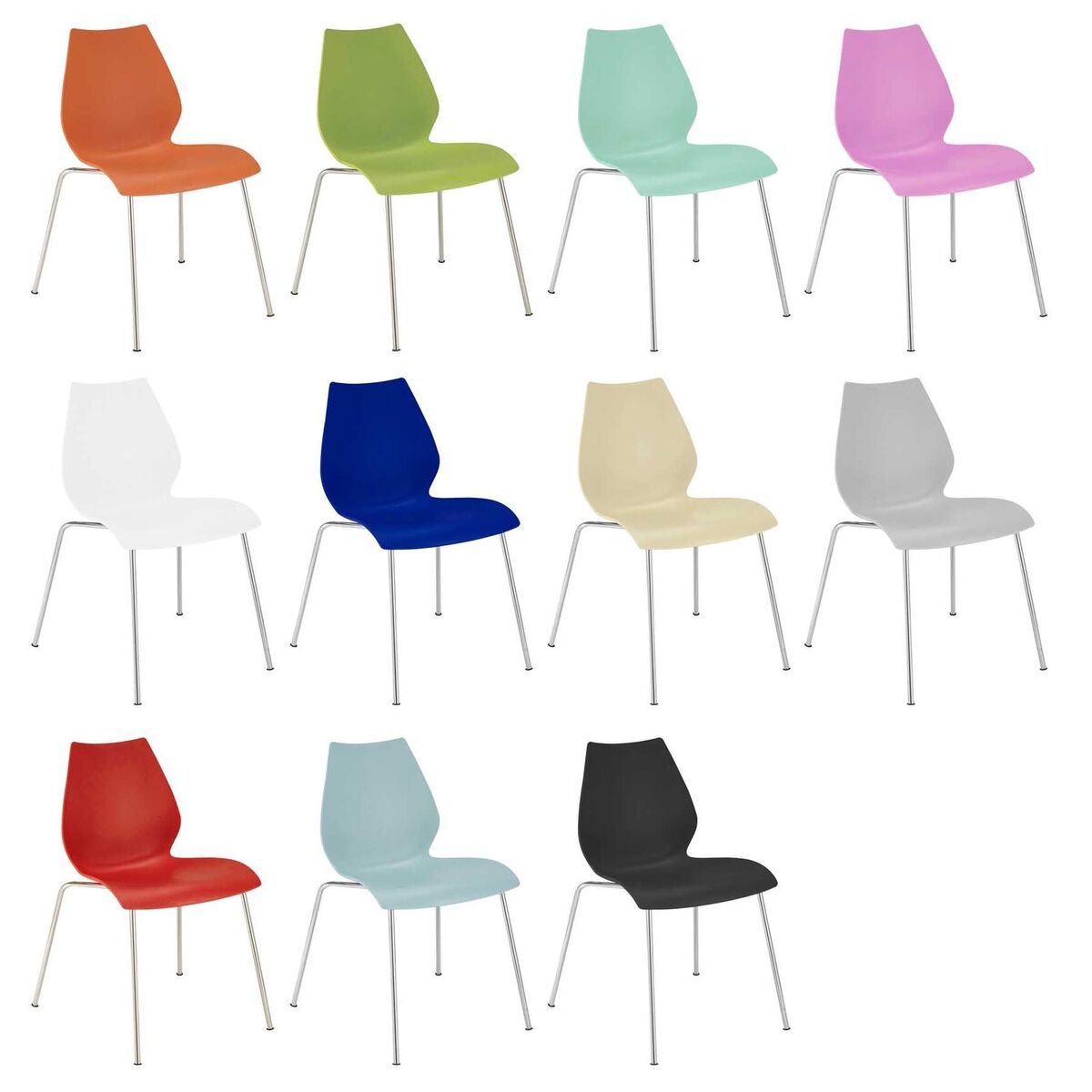 The Maui chair is extremely polyvalent in order to reply to the needs more varied of the groups and particulars. This best seller of Kartell is declined now in lively colors: green, orange and fuchsia. These add to a chromatic range already very extensive: whiter, grey, blue, crimson, yellow. The shell is realized in colored polypropylene fixed on a structue in chrome-plated steel. This chair Maui suits the different requirements of the collective places (offices, expectation rooms, offices, bars, restaurants, conference and meeting rooms) but also private spaces (dining room, cooks, room of child, office). For that, they are available in different versions: with or without armrest, on wheels, with or without lift, with tablette, hook to arrange them. Please contact us.