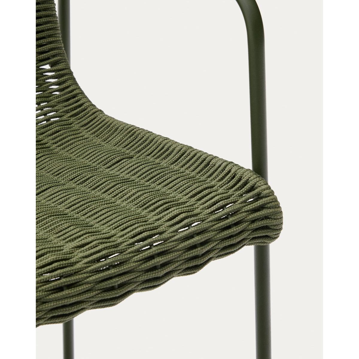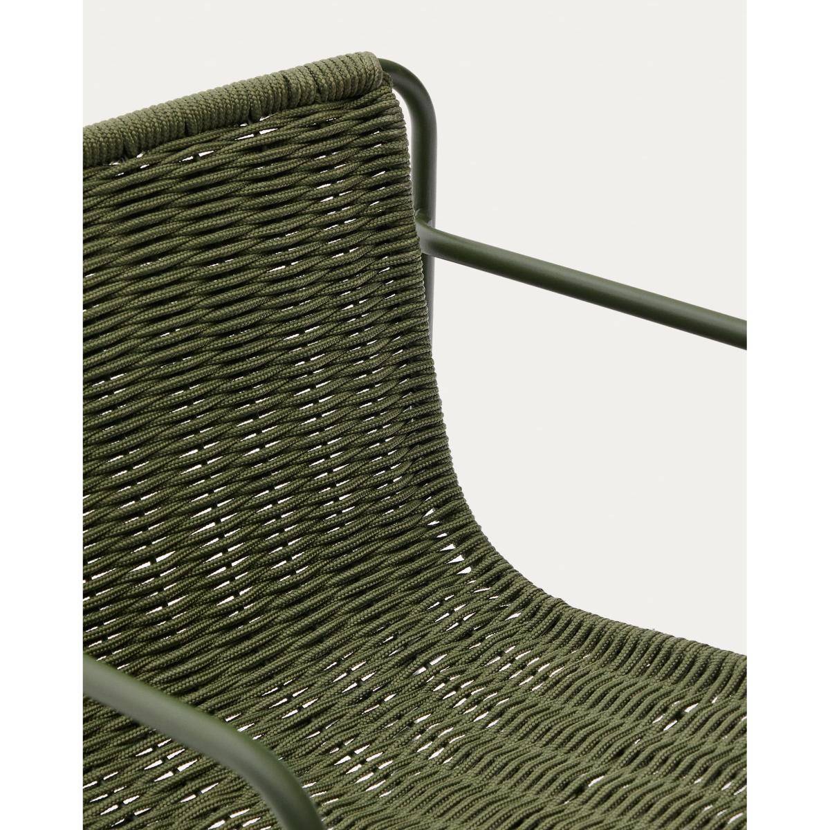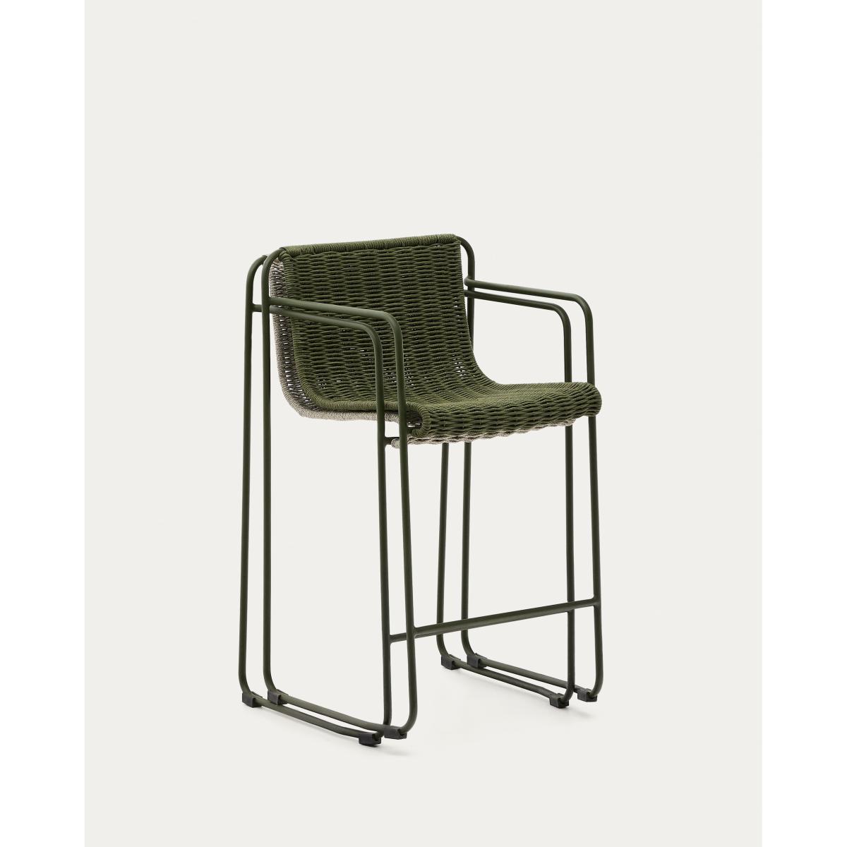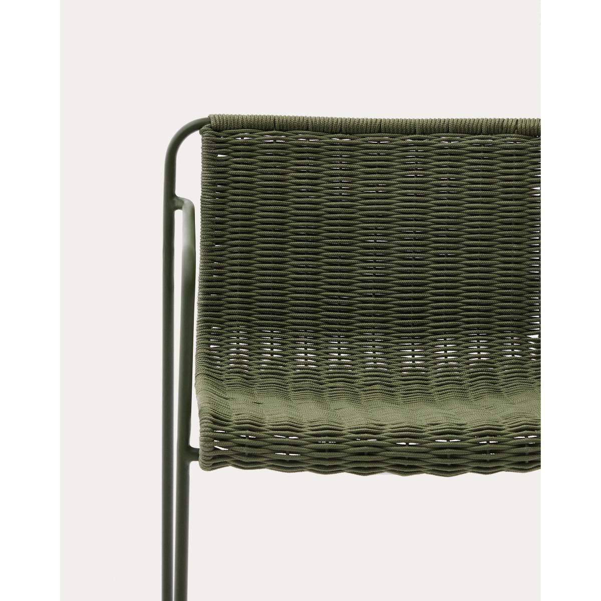 This stool, designed exclusively by Yonoh Studio for Kave Home, reinvents the essence of the Mediterranean with a contemporary and vibrant approach. With a galvanised steel structure, it stands out for its durability thanks to its resistance to rust and corrosion, as well as its ability to blend into all kinds of outdoor spaces. The seat and backrest, made with hand-woven UV-resistant rope cord in a rod structure, offer comfort and a unique style. Its skid design and generous seat measurements ensure unrivalled comfort. This piece is part of the Maurina collection, which combines the beauty of traditional materials and craftsmanship with contemporary lines, ideal for those who are looking for a balance of timeless and contemporary in their home.