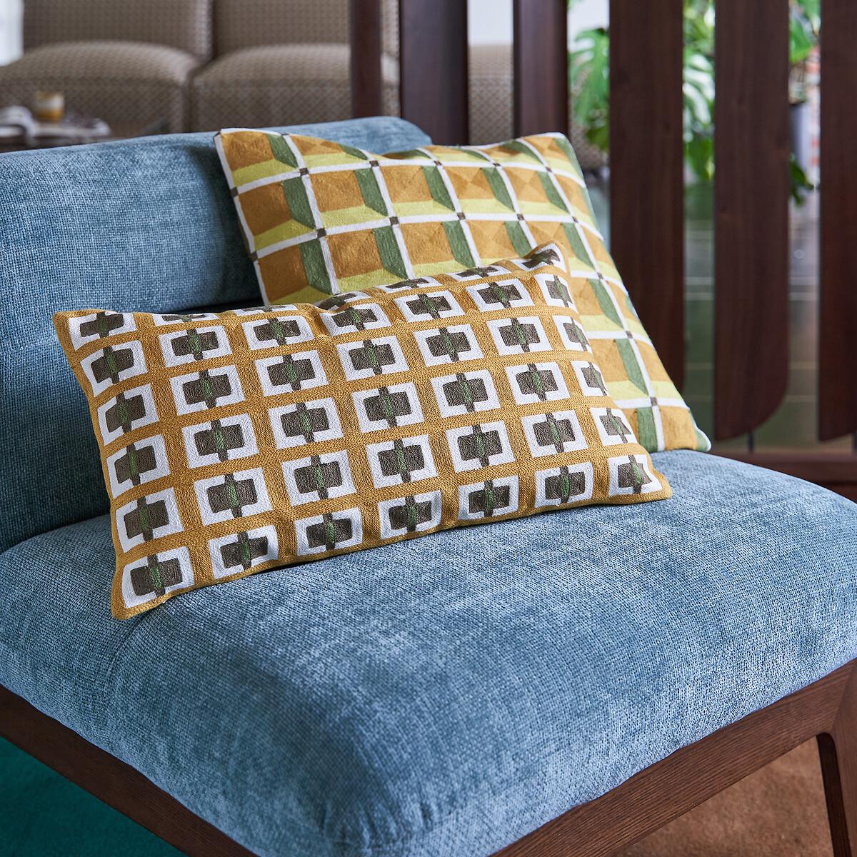 I love how this cushion cover adds a bold, retro-modern touch to any seat. The geometric pattern works particularly well in contemporary or vintage-inspired interiors, offering a pop of colour and visual interest without overwhelming the space. It's versatile enough to pair with neutral sofases or mix with other patterned textiles for a layered look. Practical styling tips include using it as a statement piece on a plain sofa, or pairing it with textured throws and other accent cushions to create a more relaxed, inviting feel. Its size makes it perfect for adding comfort while maintaining a clean, streamlined aesthetic.