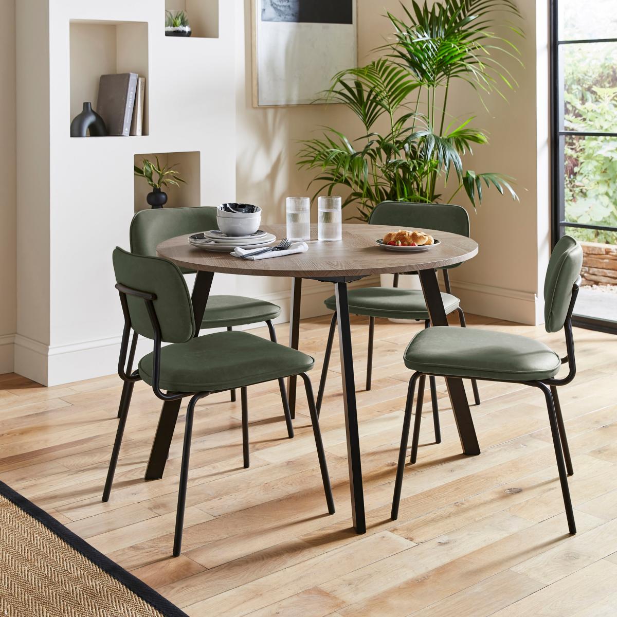 I love this round dining table for its versatile and modern design, making it a great focal point in both contemporary and minimalist interiors. Its compact size is perfect for smaller dining areas or open-plan spaces, while still providing enough surface area for gatherings. Style it with a mix of textures, such as matte ceramics or woven placemats, and complement with understated chairs for a cohesive look. To keep the space feeling airy, pair it with light-toned chairs and natural fibres, or add a bold centrepiece and colour accents for a more eclectic vibe. This table's simple elegance lends itself well to both casual family meals and more polished dinner parties.